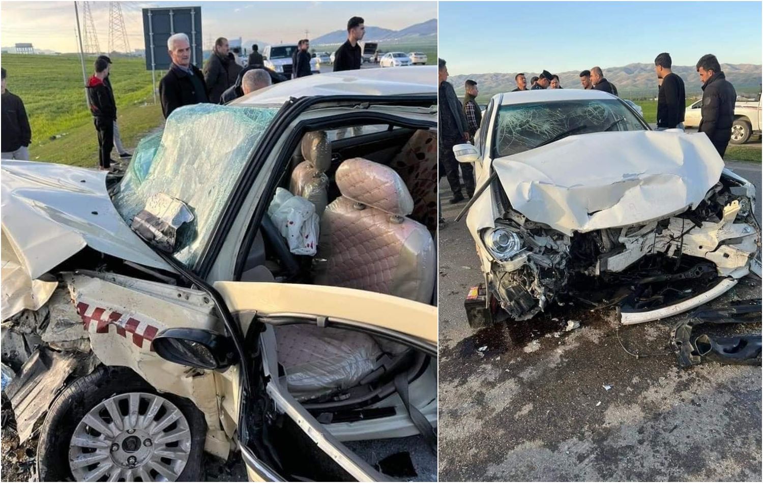 رووداوەکە لەنێوان دوو ئۆتۆمبێلی جۆری کراون ماجێستا و سەنییەکی تاکسی روویداوە، وێنە: پەیجی فەیسبووکی زەڕایەن نیوز