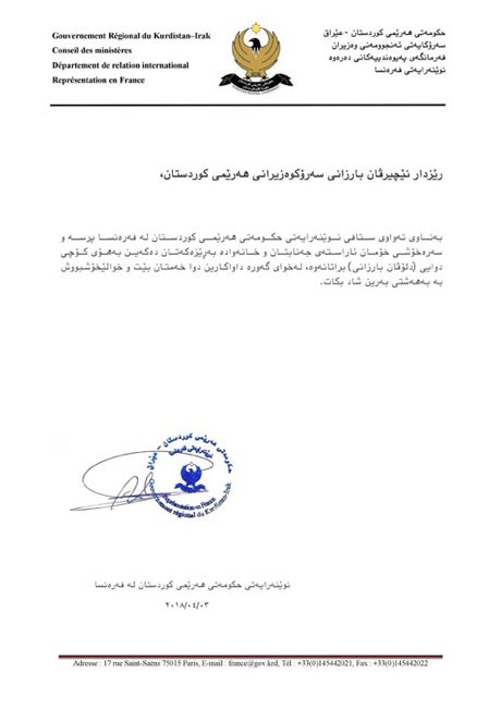 پرسەنامەی نوێنەرایەتی حکومەتی هەرێمی کوردستان لە فەرەنسا