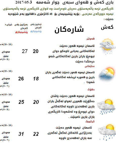 رۆژی سێشەممە 2-5-2017 بارانبارین لە باشووری کوردستان دەستیپێکردەوە بەڵام لە پارێزگای دهۆک بارانەکە تووندتر بووە.
