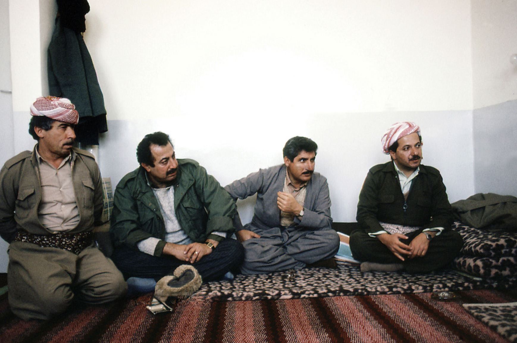 لە راستەوە: مەسعود بارزانی، فازڵ میرانی، د. رۆژ نووری شاوێس و جەرجیس حەسەن. ساڵی 1988. وێنە: Chris Kutschera