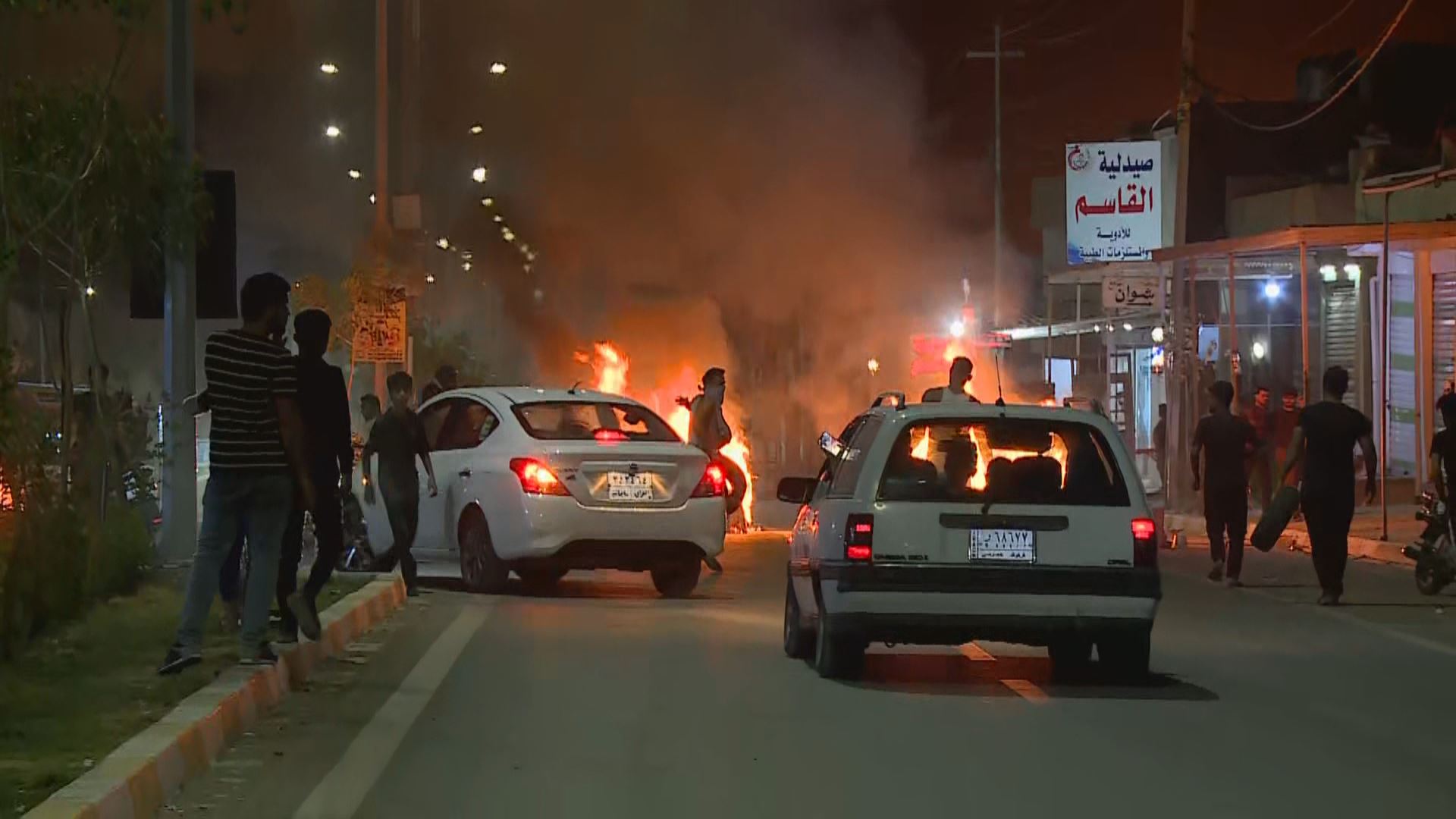 دیمەنێکی شەوی 2-9-2023ـی شەقامێکی کەرکووک کە خۆپێشاندەران لەسەر ئاگریان کردووەتەوە و رێگەیان گرتووە