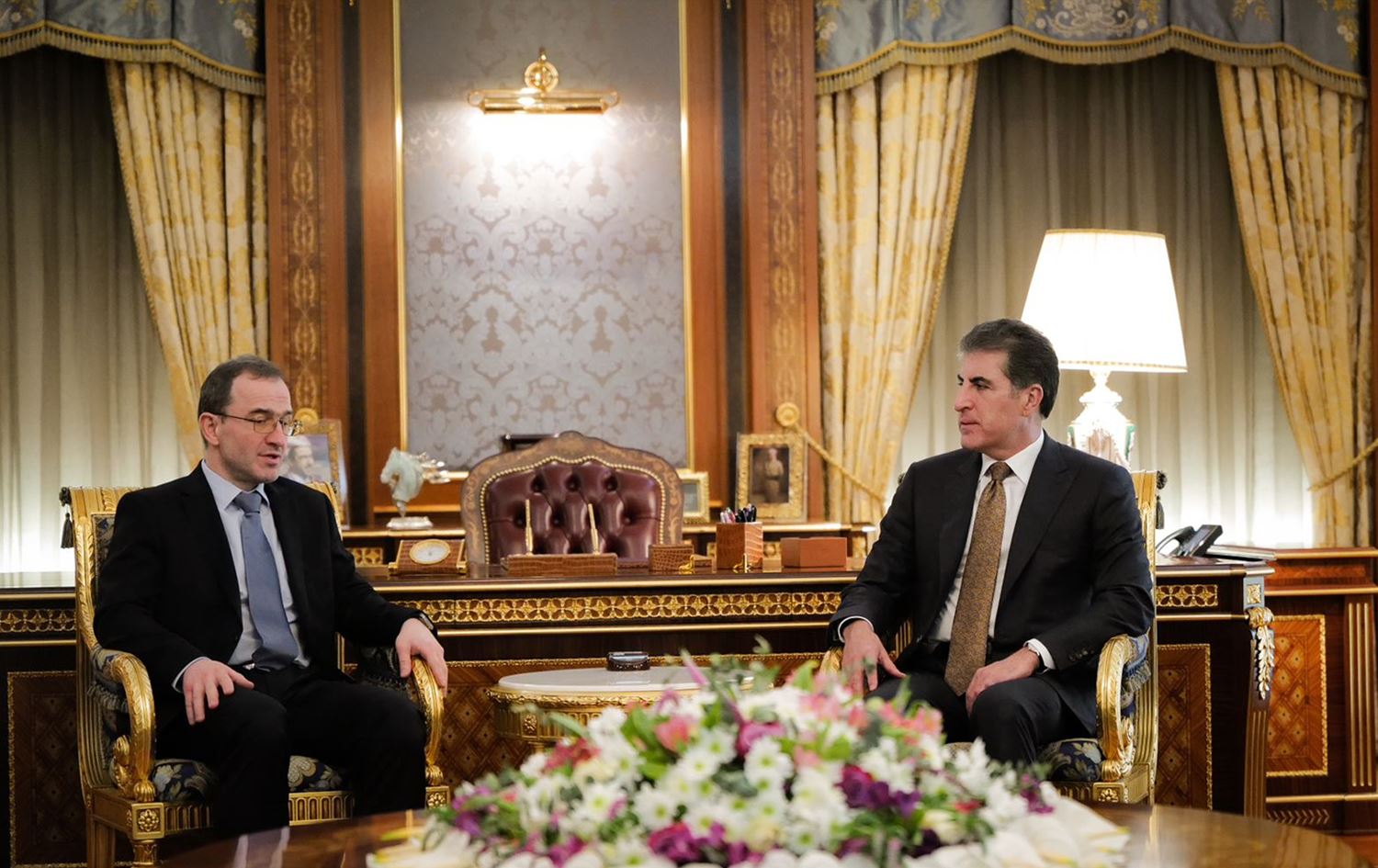 ئەمڕۆ دووشهممه، 2ـی کانوونی یەکەمی 2024، سەرۆکایەتیی هەرێمی کوردستان لە راگەیێندراوێکدا گوتی: "نێچیرڤان بارزانی، سەرۆکی هەرێمی کوردستان، له دیدارێکدا لهگهڵ ئێلبروس کوتراشێڤ، باڵیۆزی رووسیا لە عێراق، پەیوەندییەکانی رووسیای لهگهڵ عێراق و هەرێمی کوردستان تاوتوێ کرد و جهختیان لهسەر برهودان به هاریکاریی هاوبهش له بواره جیاجیاکاندا، کردهوه."