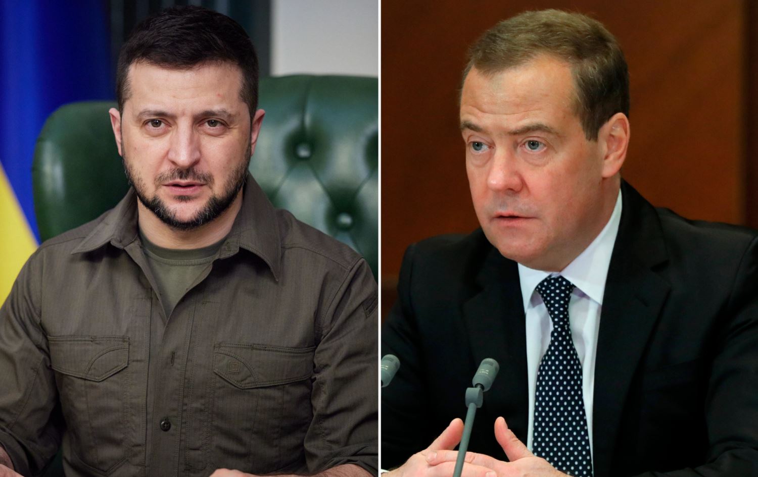 دیمتری مێدڤیدێڤ، جێگری سەرۆکی ئەنجوومەنی ئاسایشی رووسیا و ڤۆلۆدمیر زیلینسکی، سەرۆکی ئۆکراینا