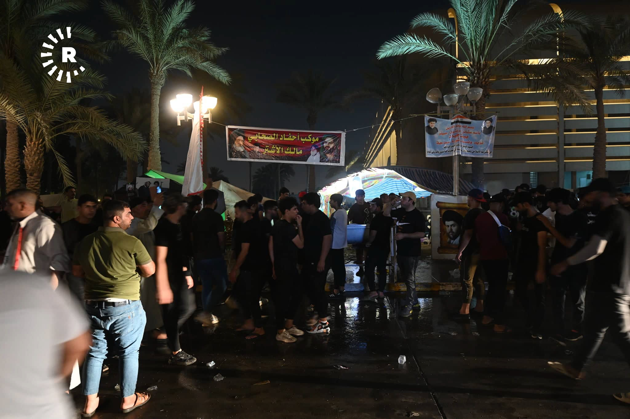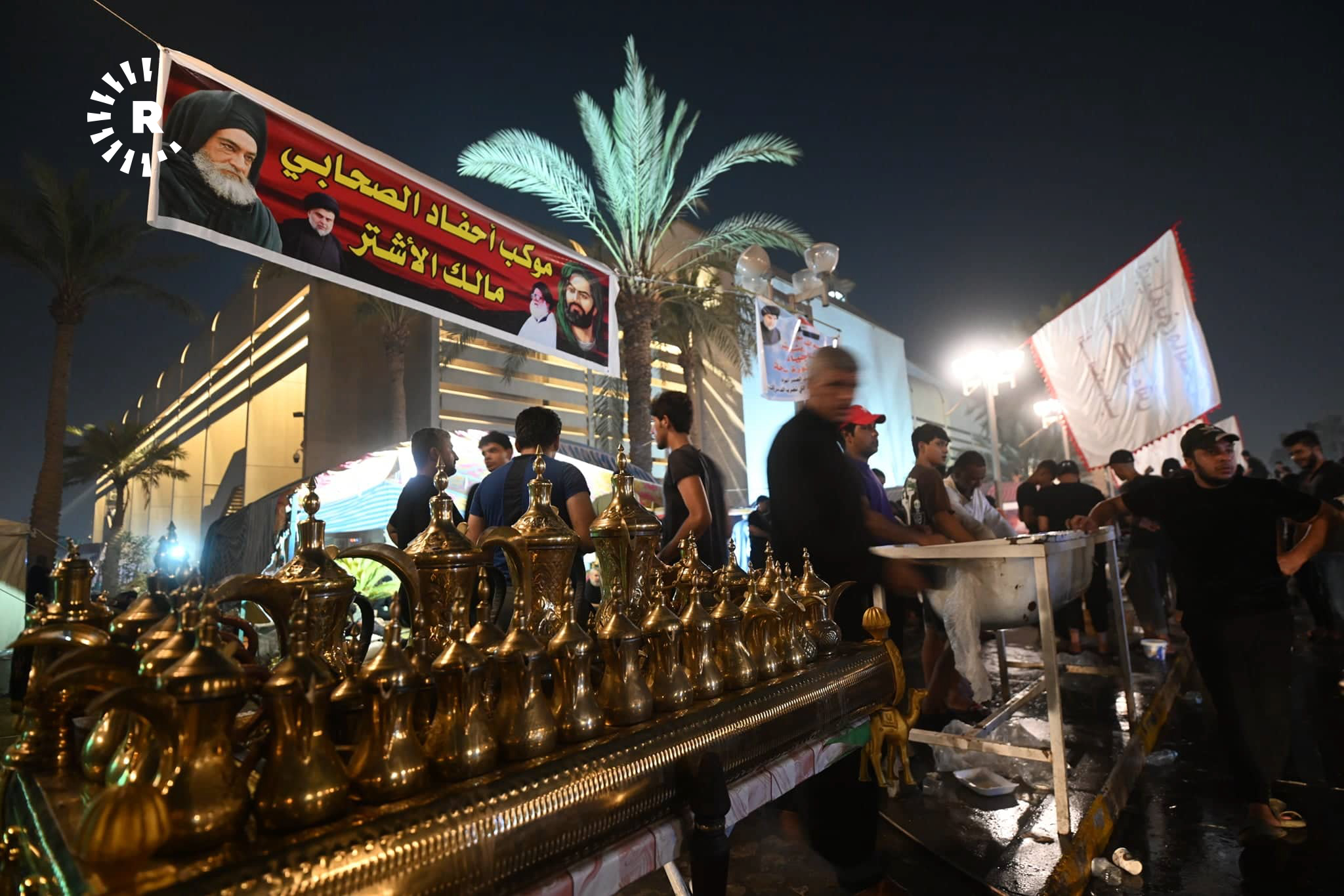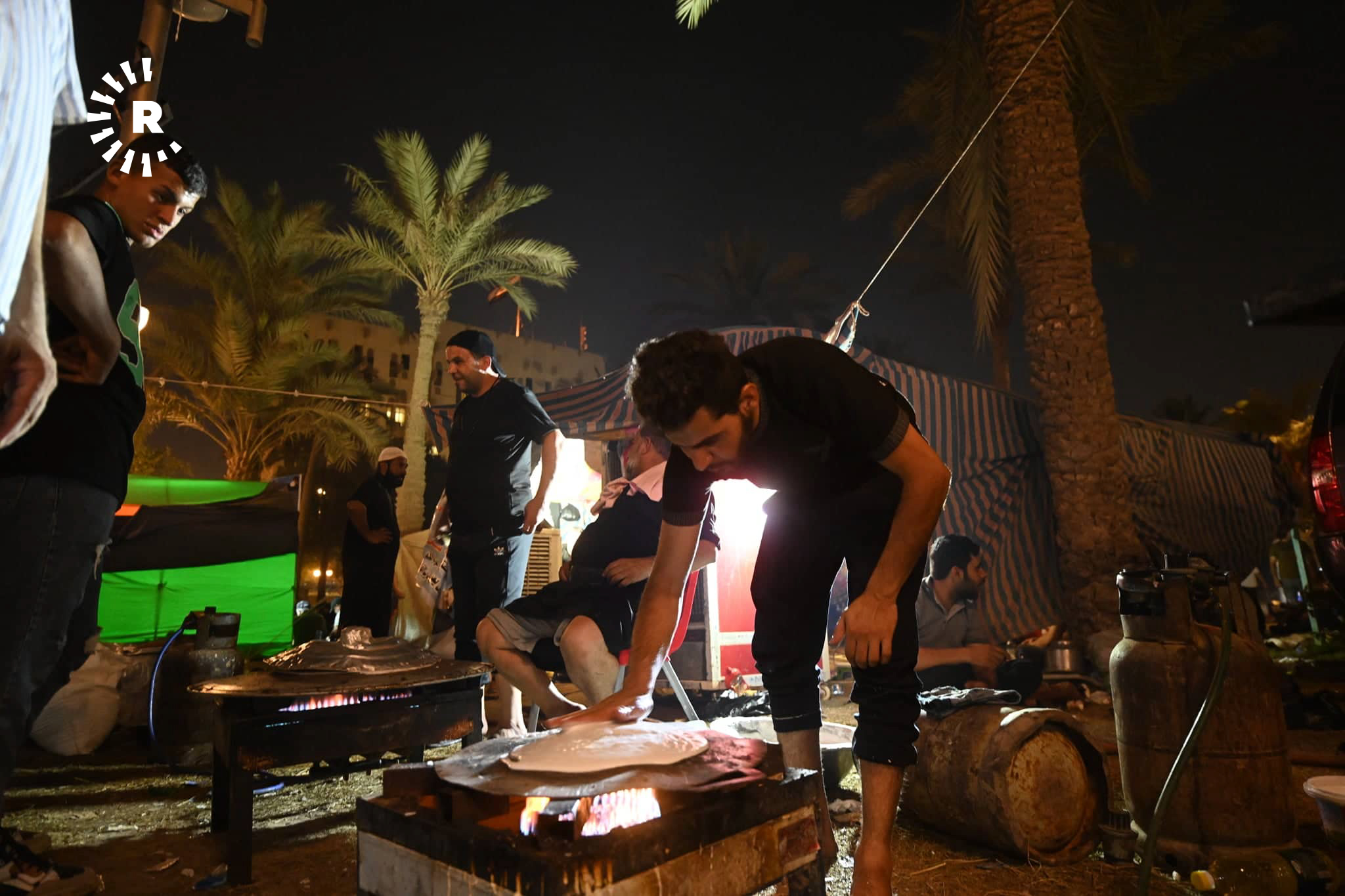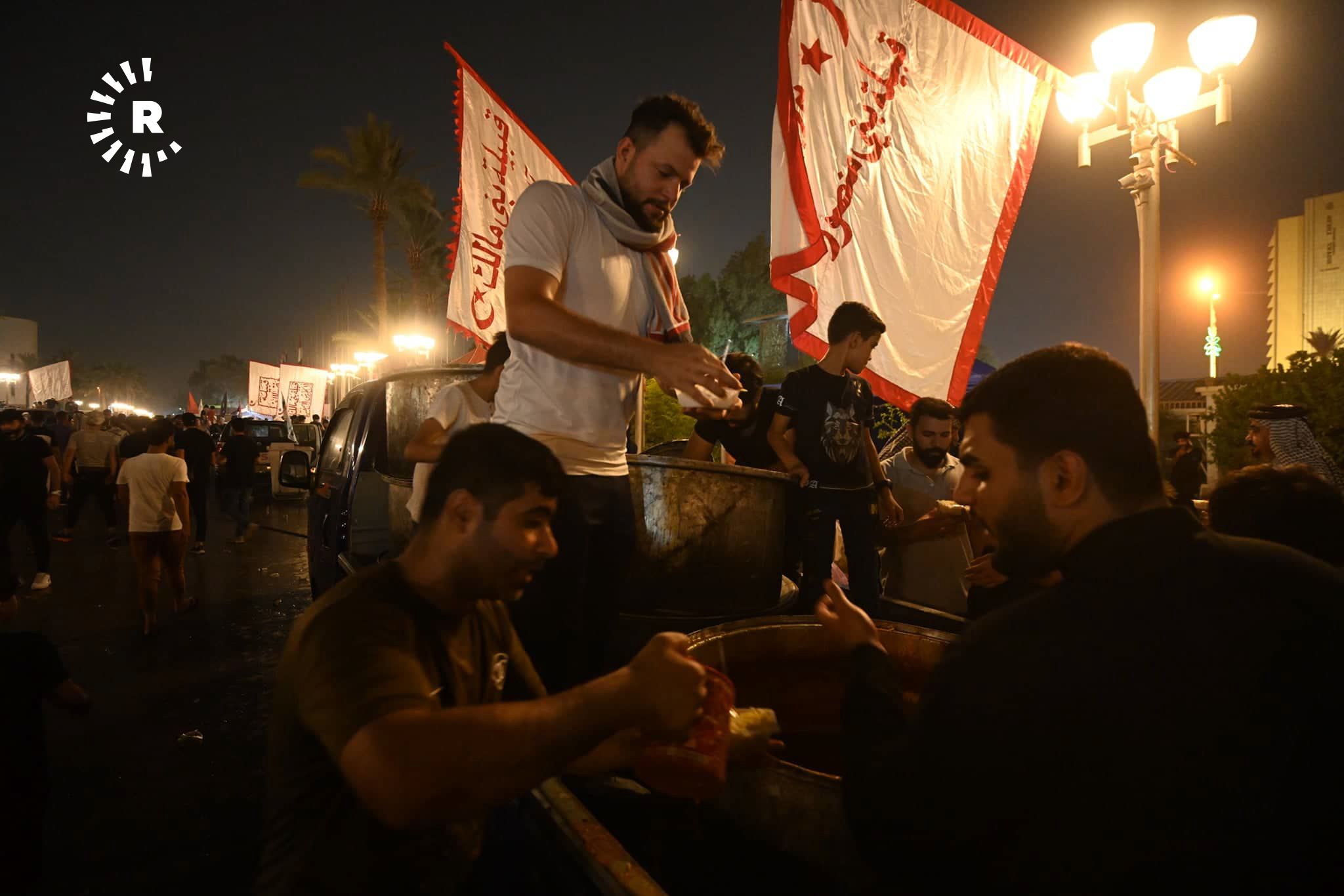 ئەو وێنانە بەردەم پەرلەمانی عێراقن، خۆپێشاندەران سەرقاڵی ئامادەکردنی چێشت و بەخشینەوەیین بە خۆپێشاندەرانی دیکە.