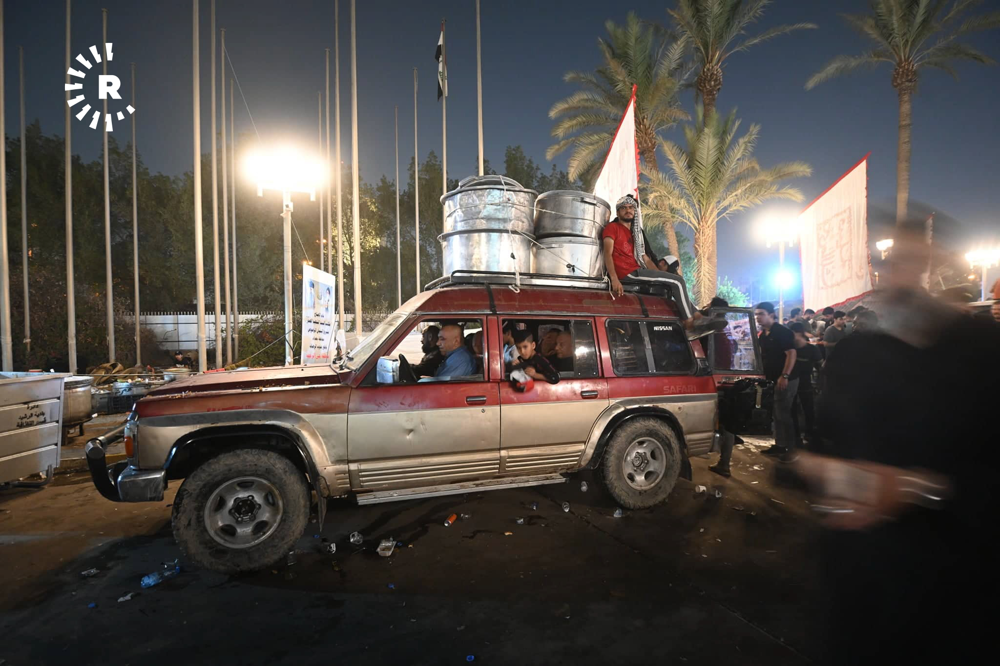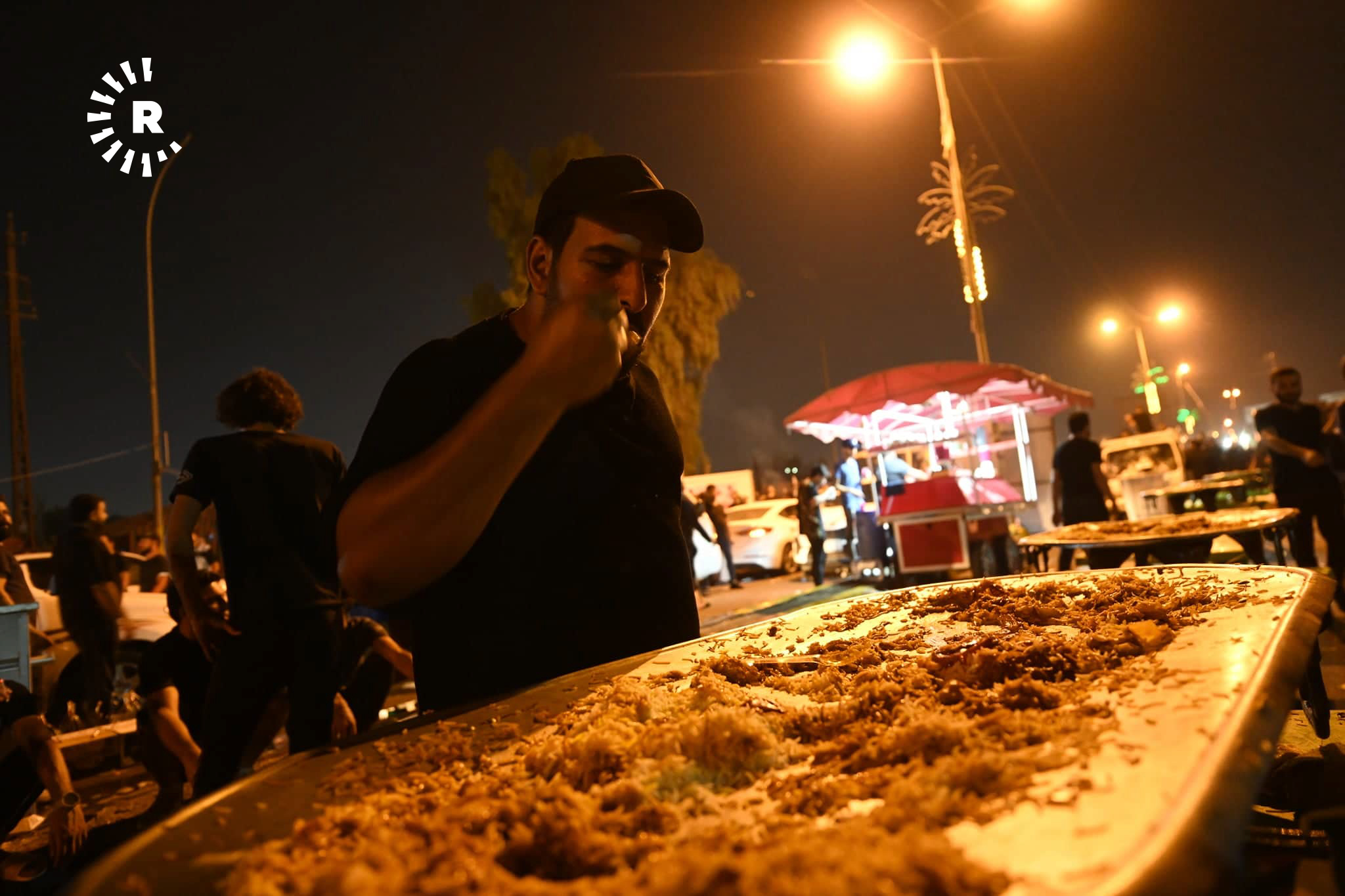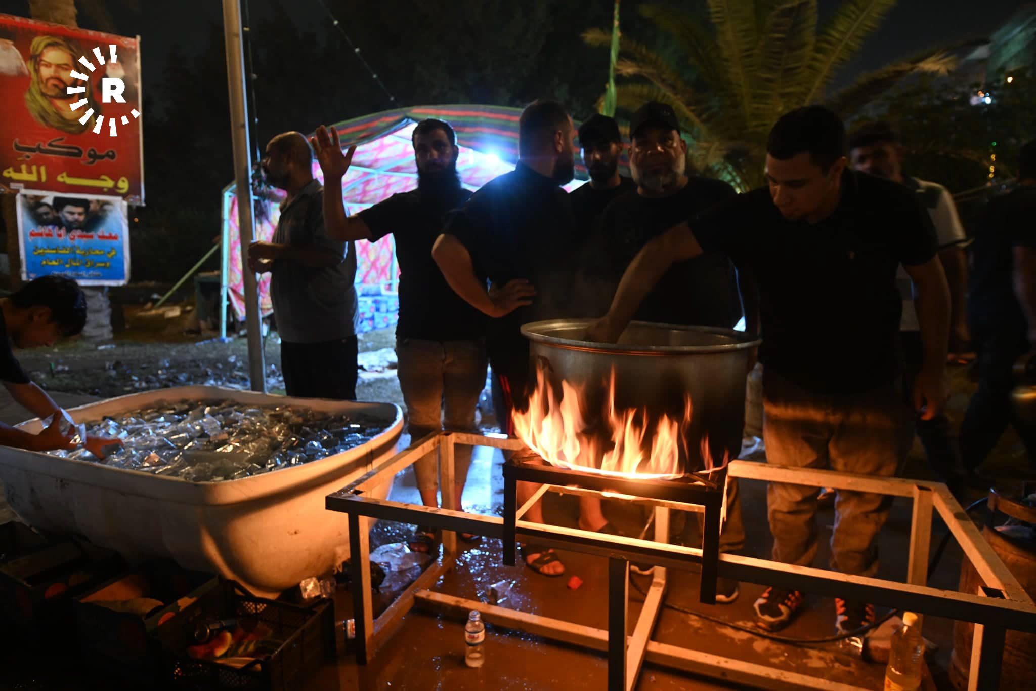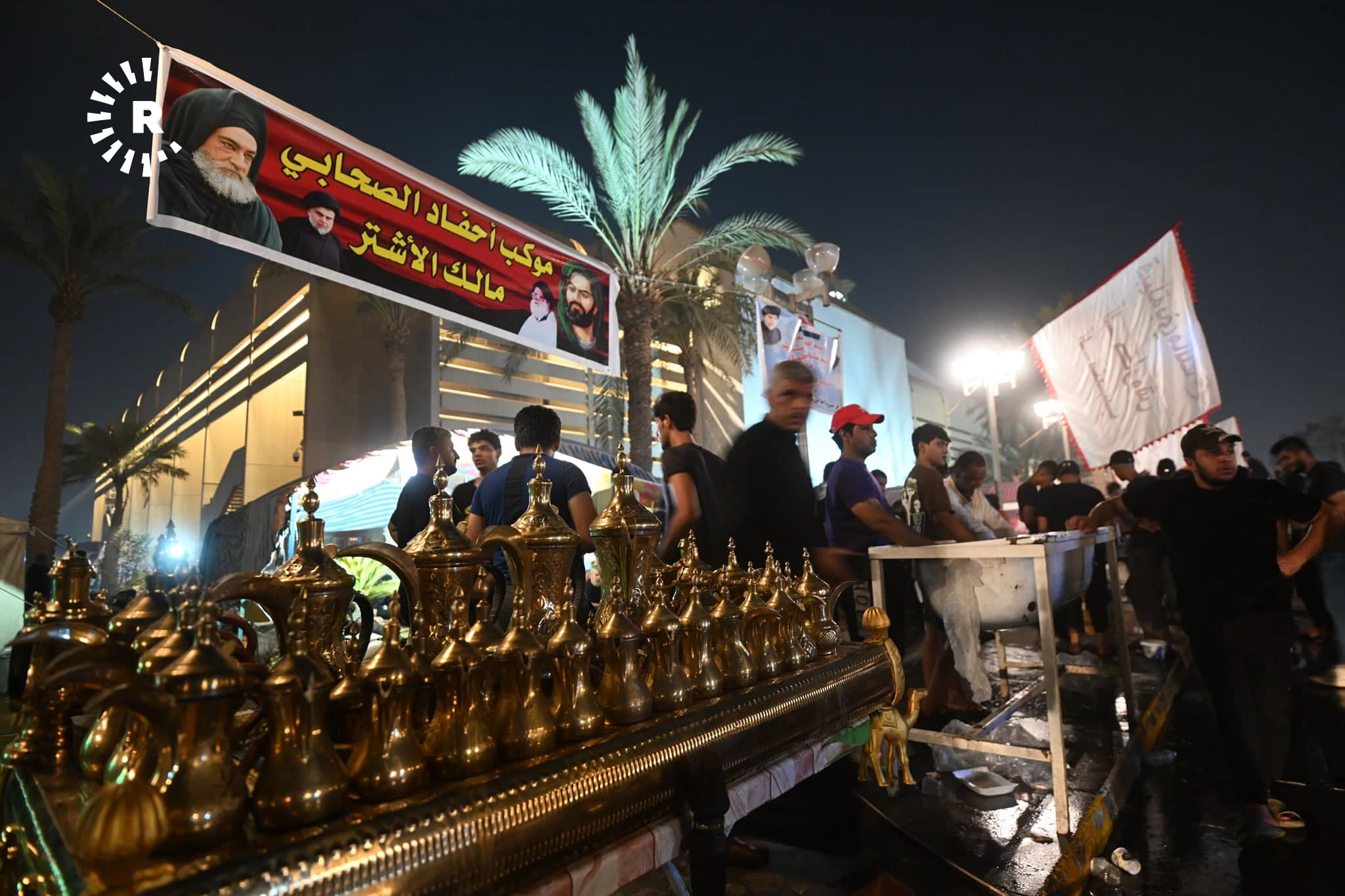 ئەو وێنانە بەردەم پەرلەمانی عێراقن، خۆپێشاندەران سەرقاڵی ئامادەکردنی چێشت و بەخشینەوەیین بە خۆپێشاندەرانی دیکە.