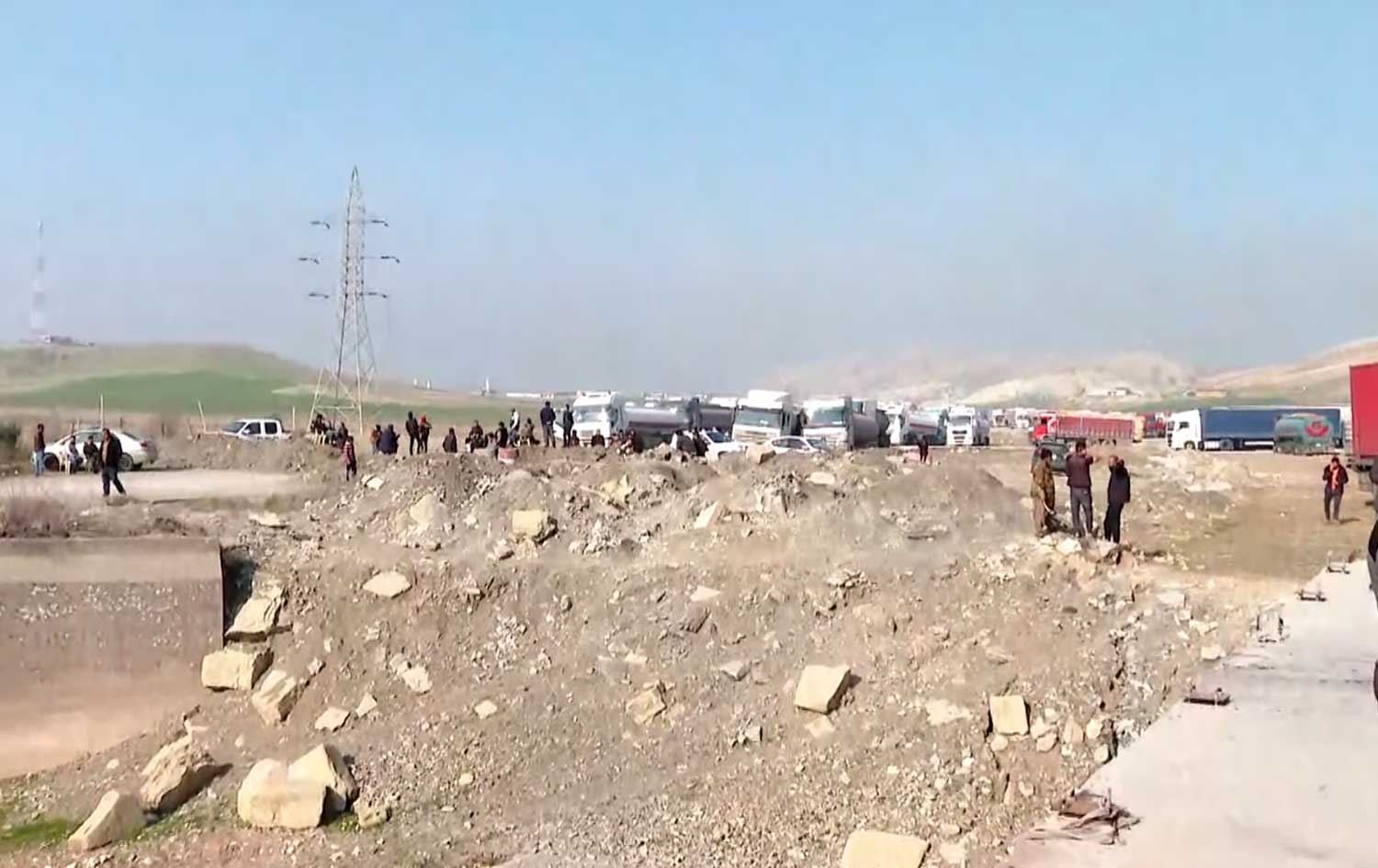 ئەمڕۆ پێنجشەممە، 04-01-2024، بۆ رۆژی سێیەم دانیشتووانی نزیکەی 35 گوندی خەلەکان و شارۆچکەی خدران و لە نزیک گوندی باداوان رێگەیان بەڕووی ئۆتۆمبێلی تانکەر و بارهەڵگرەکاندا داخستووە و بۆ کردنەوەی رێگەکەش خوازیاری جێبەجێکردنی داواکارییەکانیانن.