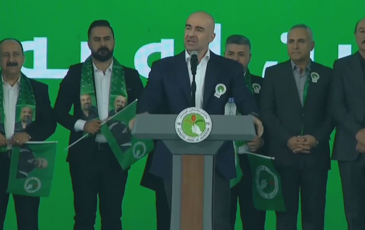 سەرۆکی یەکێتیی نیشتمانیی کوردستان، بۆ بانگەشەی هەڵبژاردنی پەرلەمانی عێراق، چووە شارۆچکەی خانەقین و قسەی بۆ ئەندام و لایەنگرانی حیزبەکەی کرد. پێش دەستپێکردنی گوتارەکەی، داوای لە مەڵبەندی خانەقین کرد وێنەی ئەو لە تەنیشت وێنەی مام جەلال لابدەن.