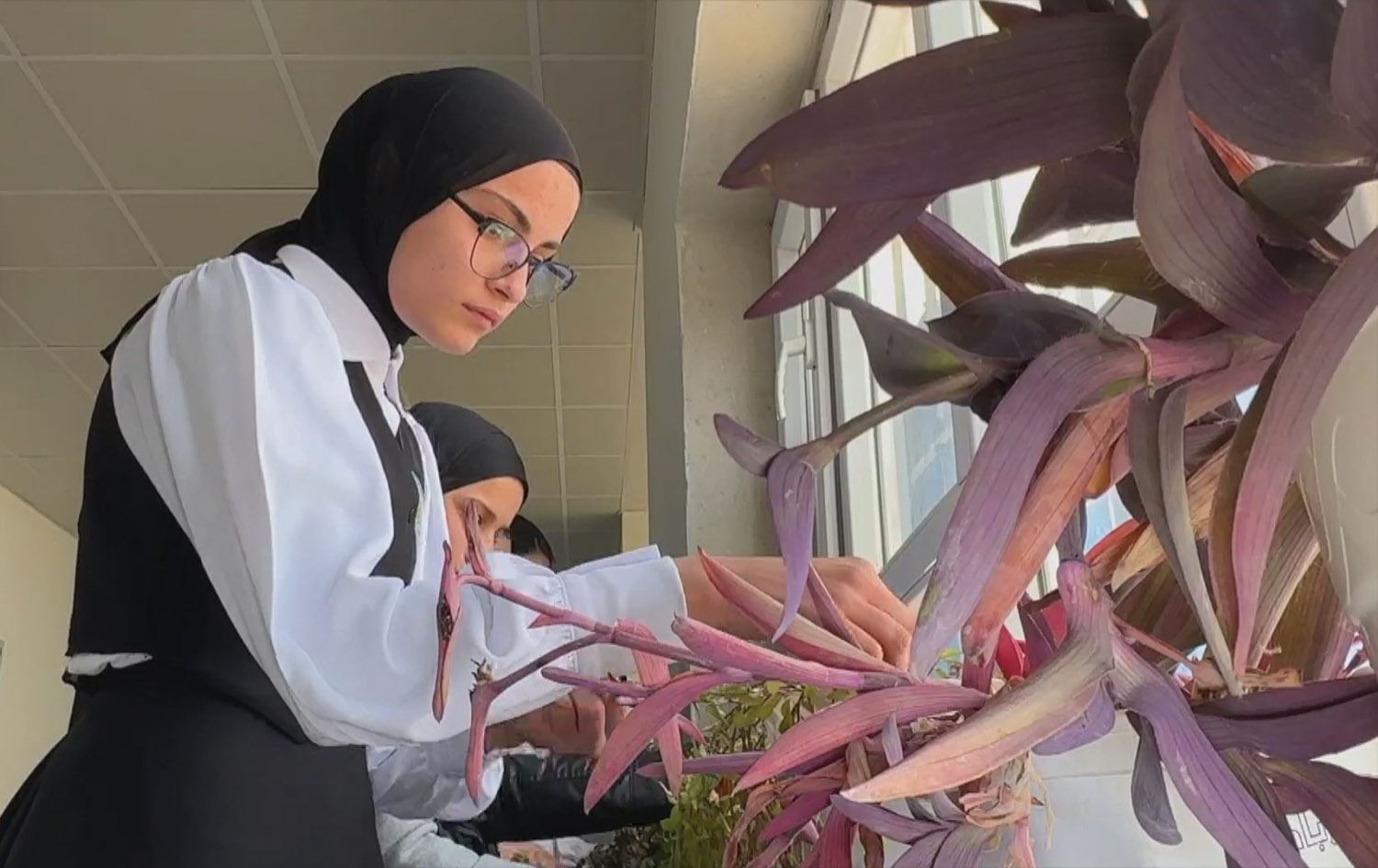 جوان غەریب، قوتابی قوتابخانەی بەنێنان لە بەردەڕەش دەڵێت، "نزیکەی ساڵێکە لە ماڵەوە گوڵ بەخێو دەکەم. گۆزەیەک گوڵم هێناوە بۆ قوتابخانە بۆئەوەی سرووشتێکی جوانی هەبێت."