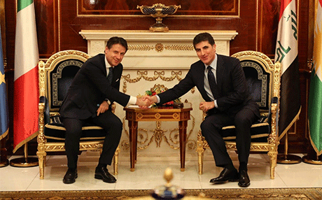 ئێوارەی ئەمڕۆ جۆزیپی کۆنتی، سەرۆکوەزیرانی ئیتاڵیا گەیشتە هەولێر و لەلایەن نێچیرڤان بارزانی، سەرۆکوەزیرانی هەرێمی کوردستانەوە پێشوازی لێکرا.