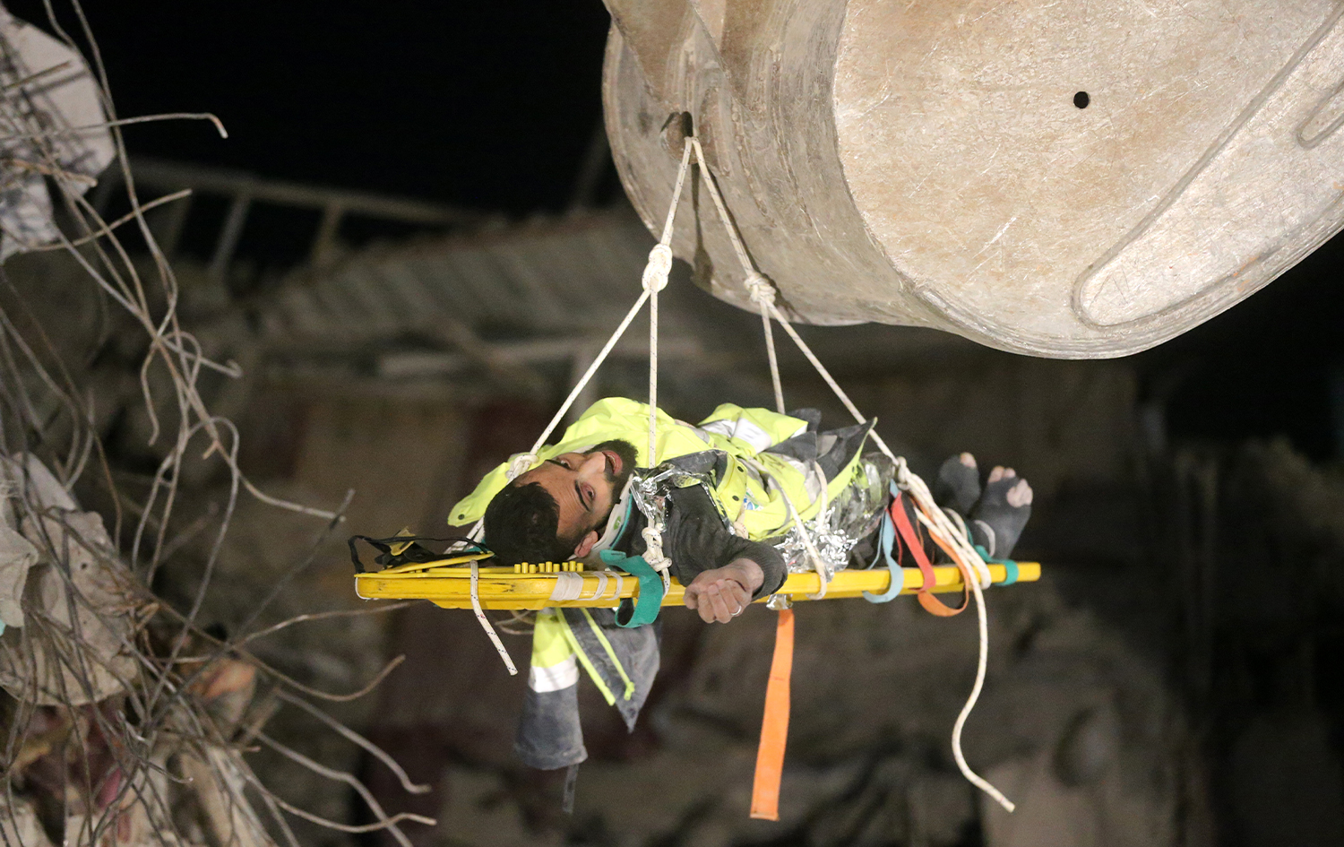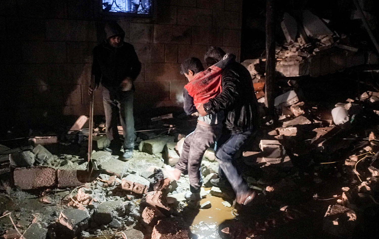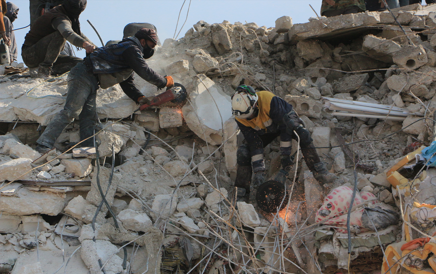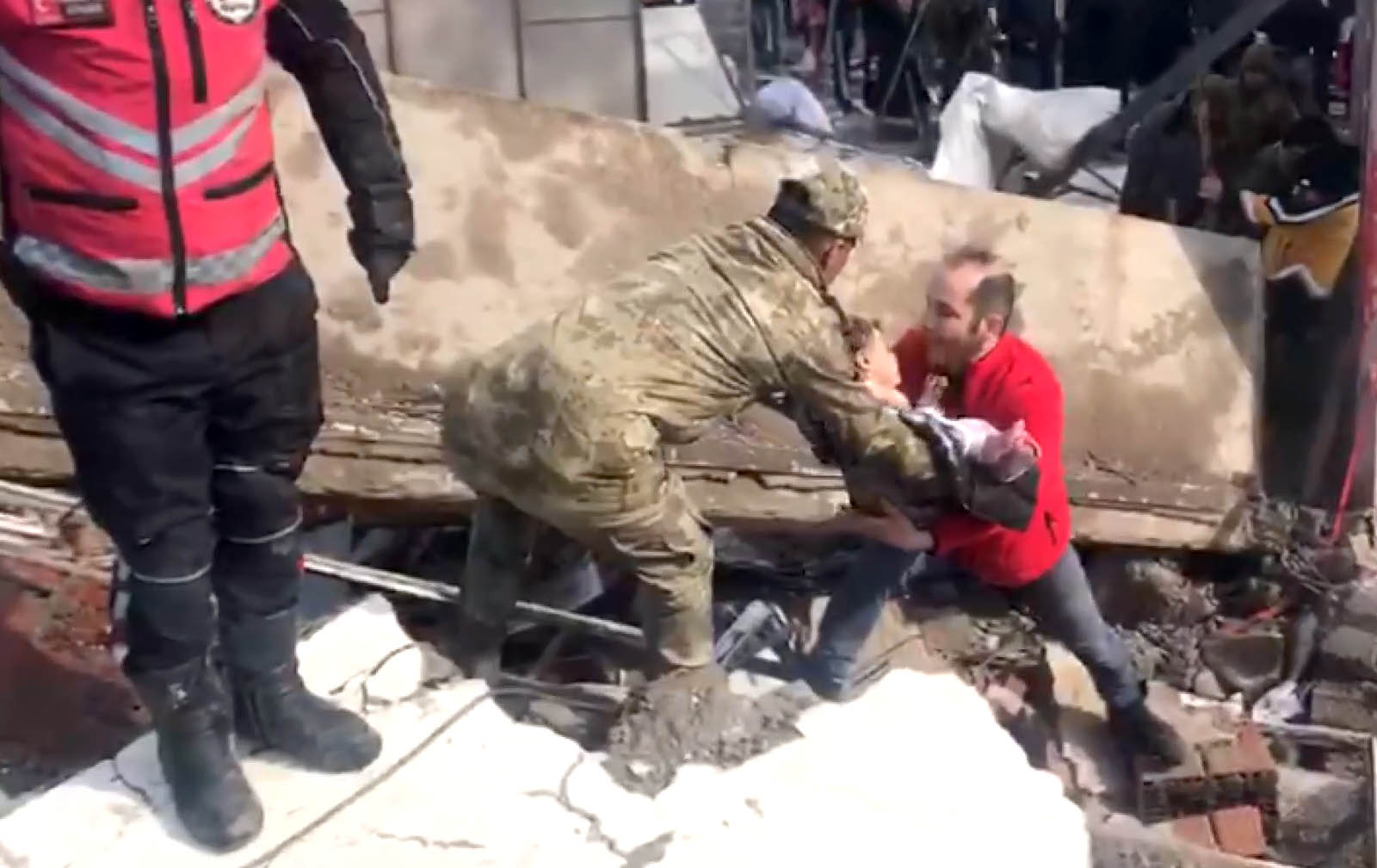 هەوڵدان بۆ رزگارکردنی هاونیشتمانیان لە عەفرین دوای بوومەلەرزە بەهێزەکە. وێنە: AFP