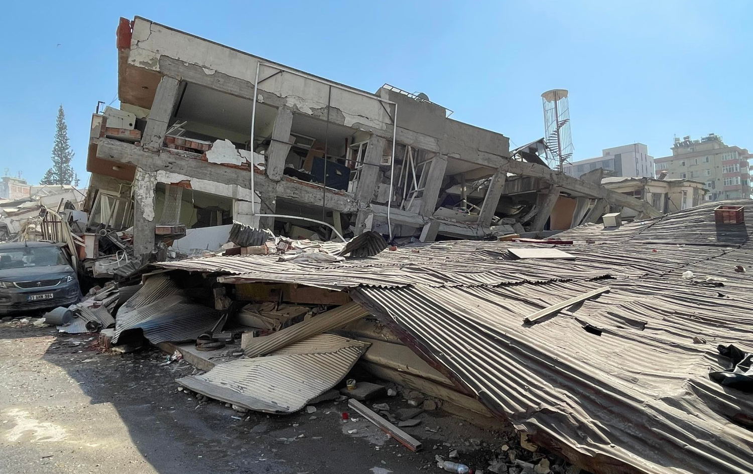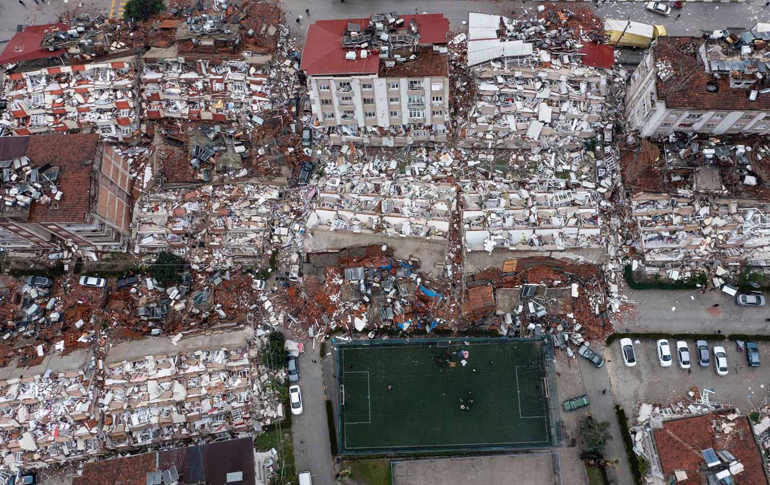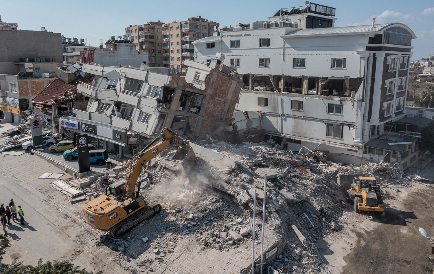 وێنەکە شاری هاتای تورکیایە بەهۆی بوومەلەرزەوە بەشێکی باڵەخانەکانی رووخاون. وێنە: AA