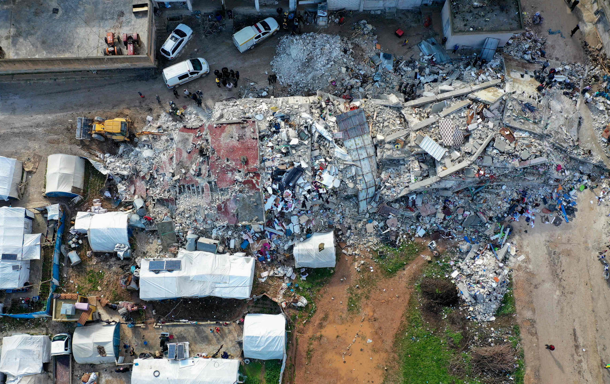باڵەخانەیەکی رووخاو لە سووریا دوای بوومەلەرزە. وێنە؛ OMAR HAJ KADOUR / AFP