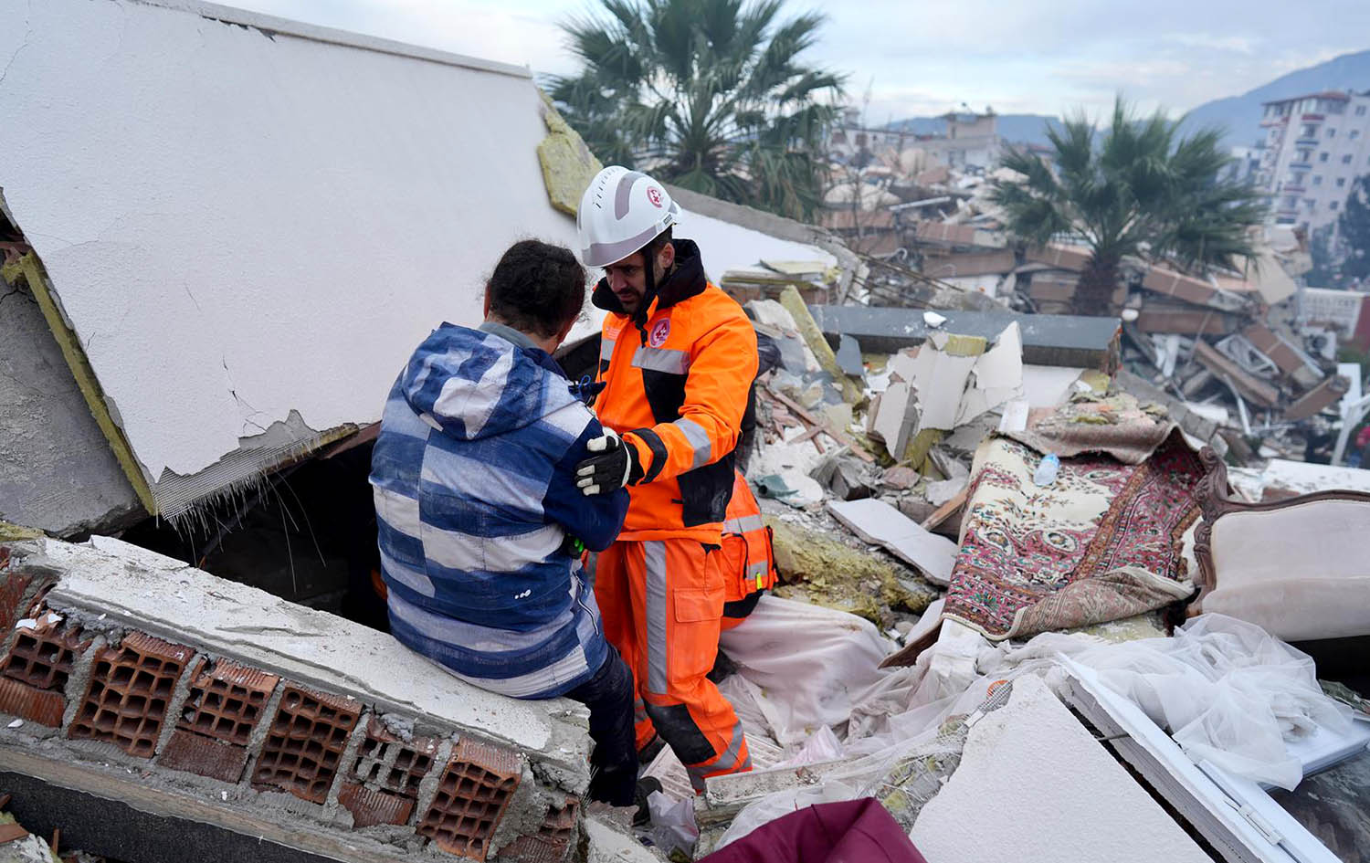 لە هاتای تیمەکان هەوڵی رزگارکردنی گەنجێک دەدەن. وێنە: AA