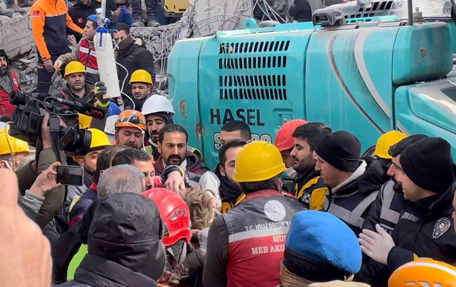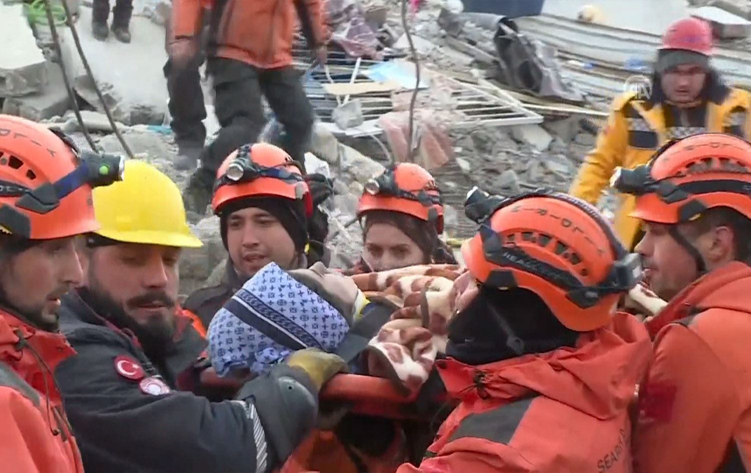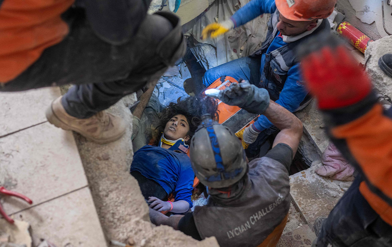 دیمەنی کاتی رزگارکردنی کچێک لە هاتای تورکیا. وێنە: AFP