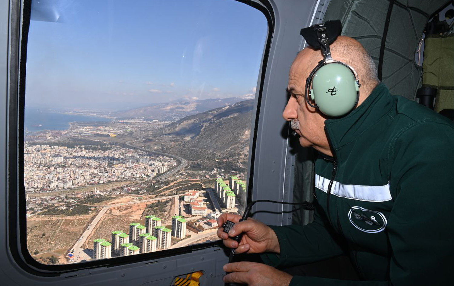 ڤاهیت کیریشچی، وەزیری کشتوکاڵ و دارستانی تورکیا لەنێو هێلیکۆپتەر سەیری بەنداوەکان دەکات. وێنە: AA