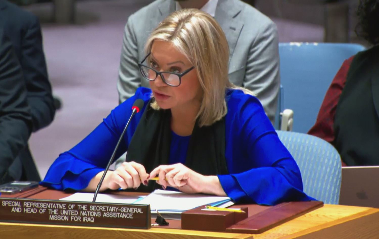 جێنین هێنیس پلاسخارت، نوێنەری سکرتێری گشتیی نەتەوە یەکگرتووەکان لە عێراق لەبارەی دۆخی عێراق و هەرێمی کوردستانەوە لە ئەنجوومەنی ئاسایشی نێودەوڵەتی لە نیویۆرک گوتارێکی پێشکێش کرد.