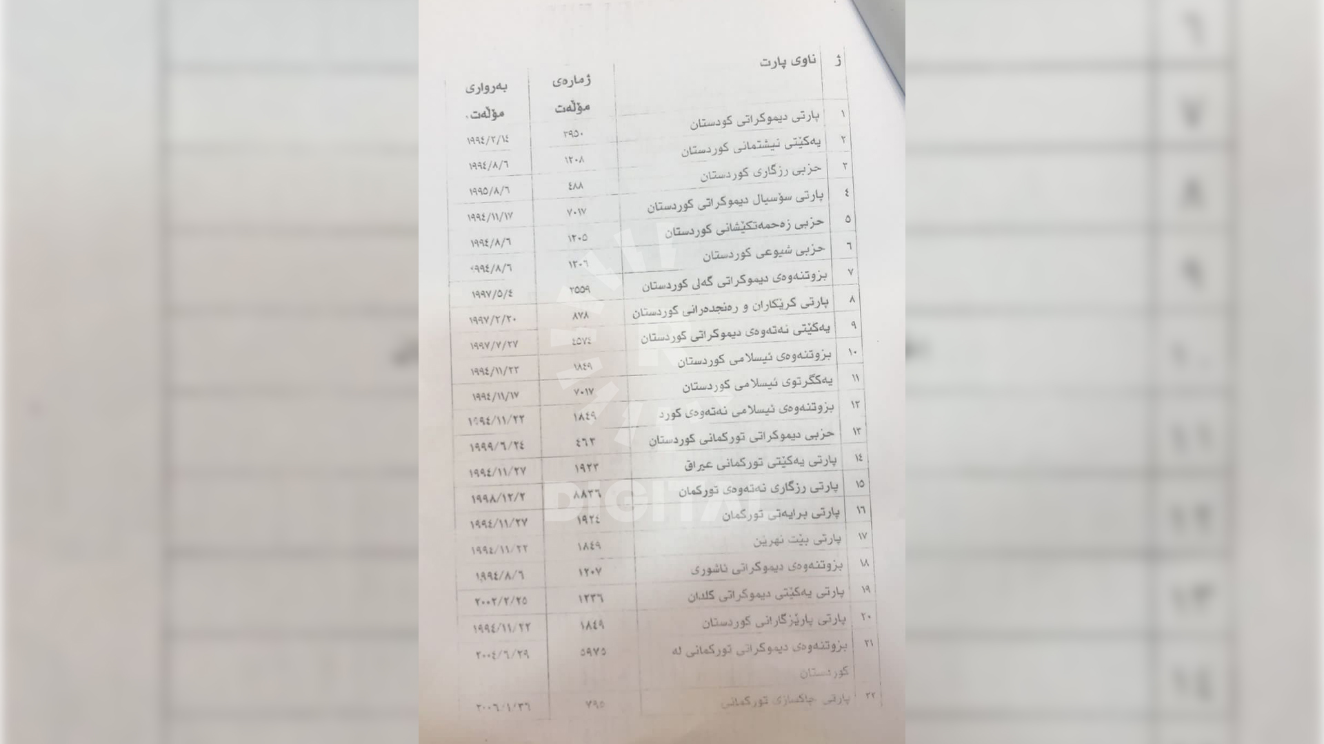 17 لەو حیزبانە لە هەرێمی کوردستان و 21ی دیکە لە عێراق خۆیان تۆمارکردووە.