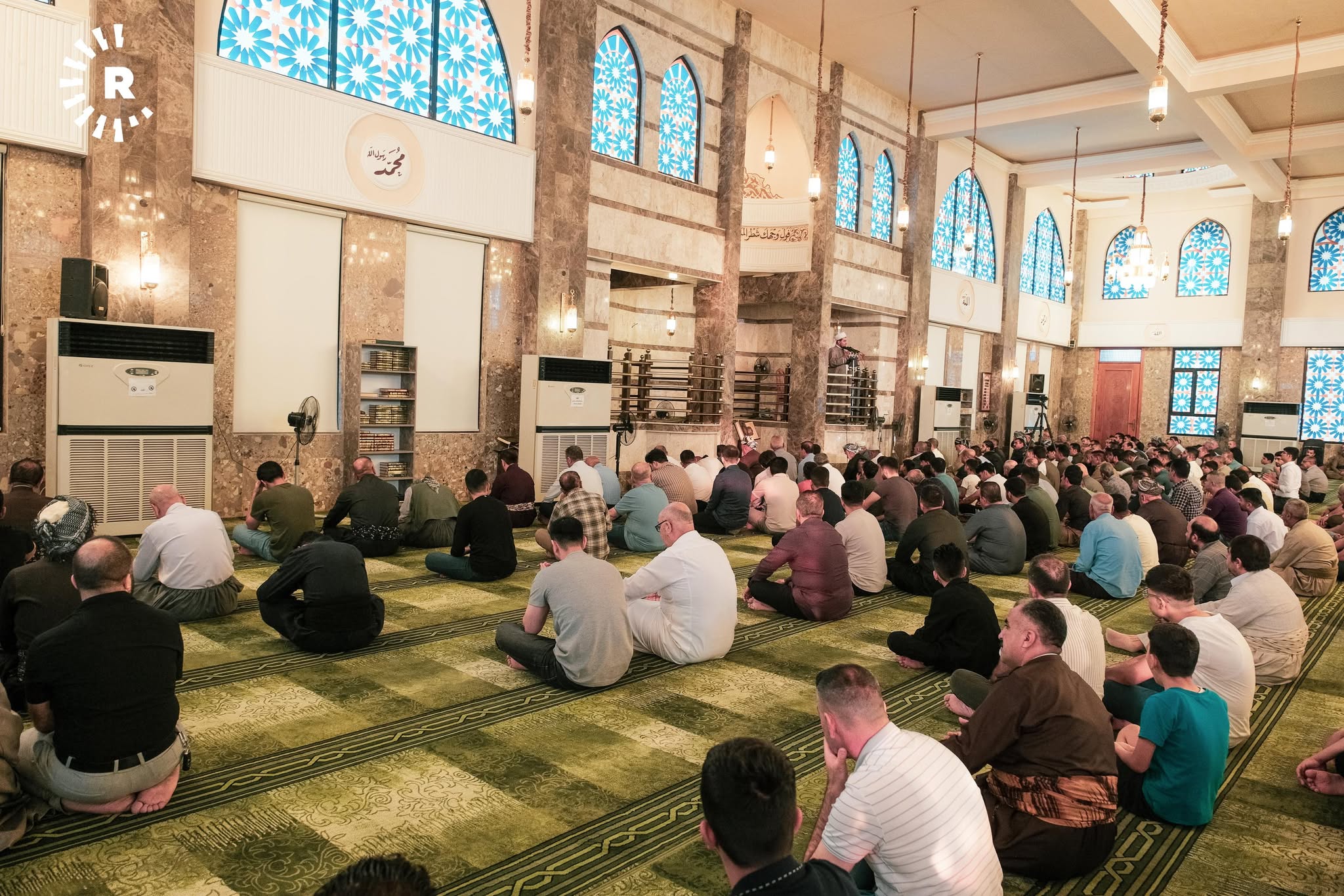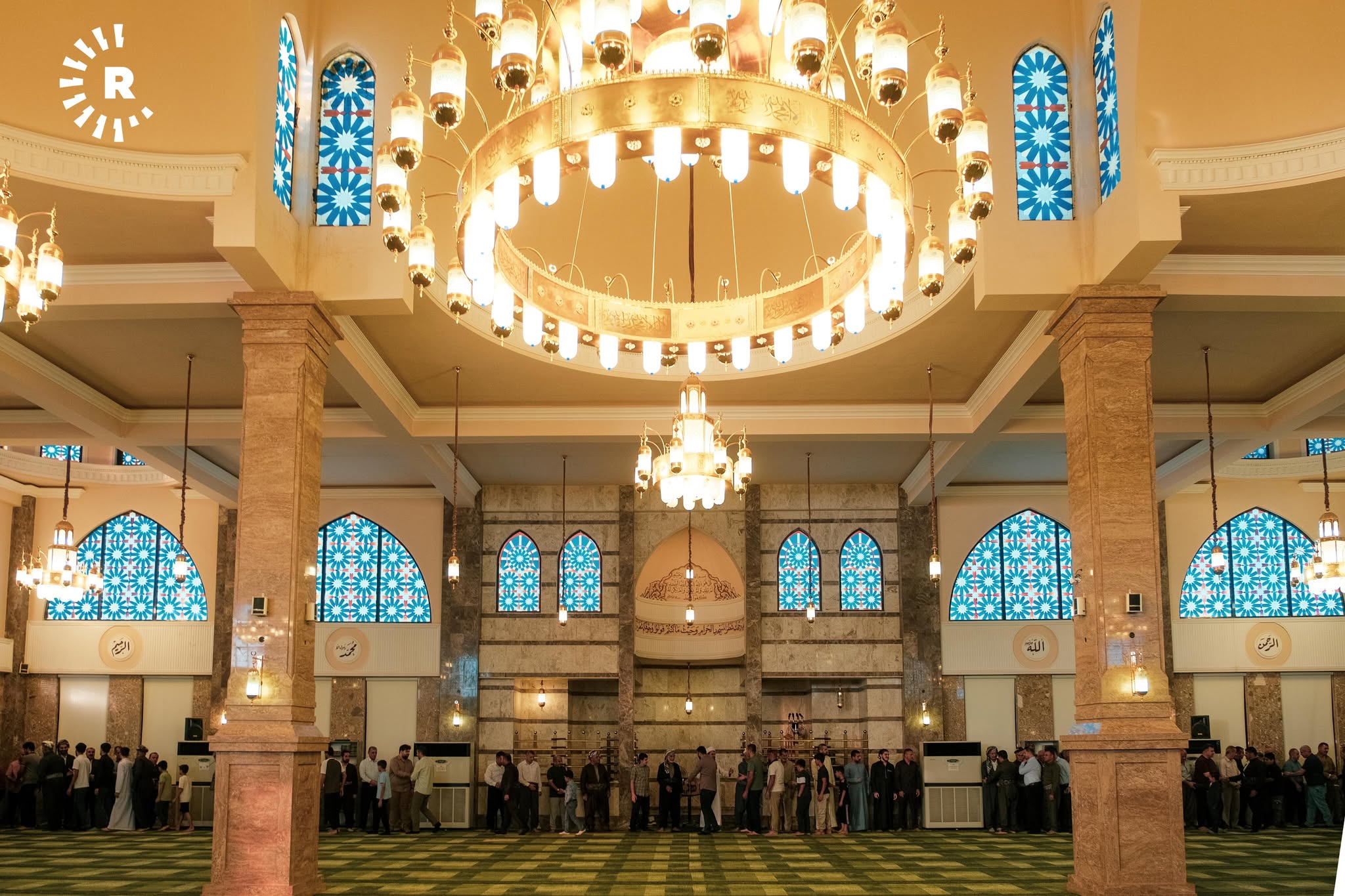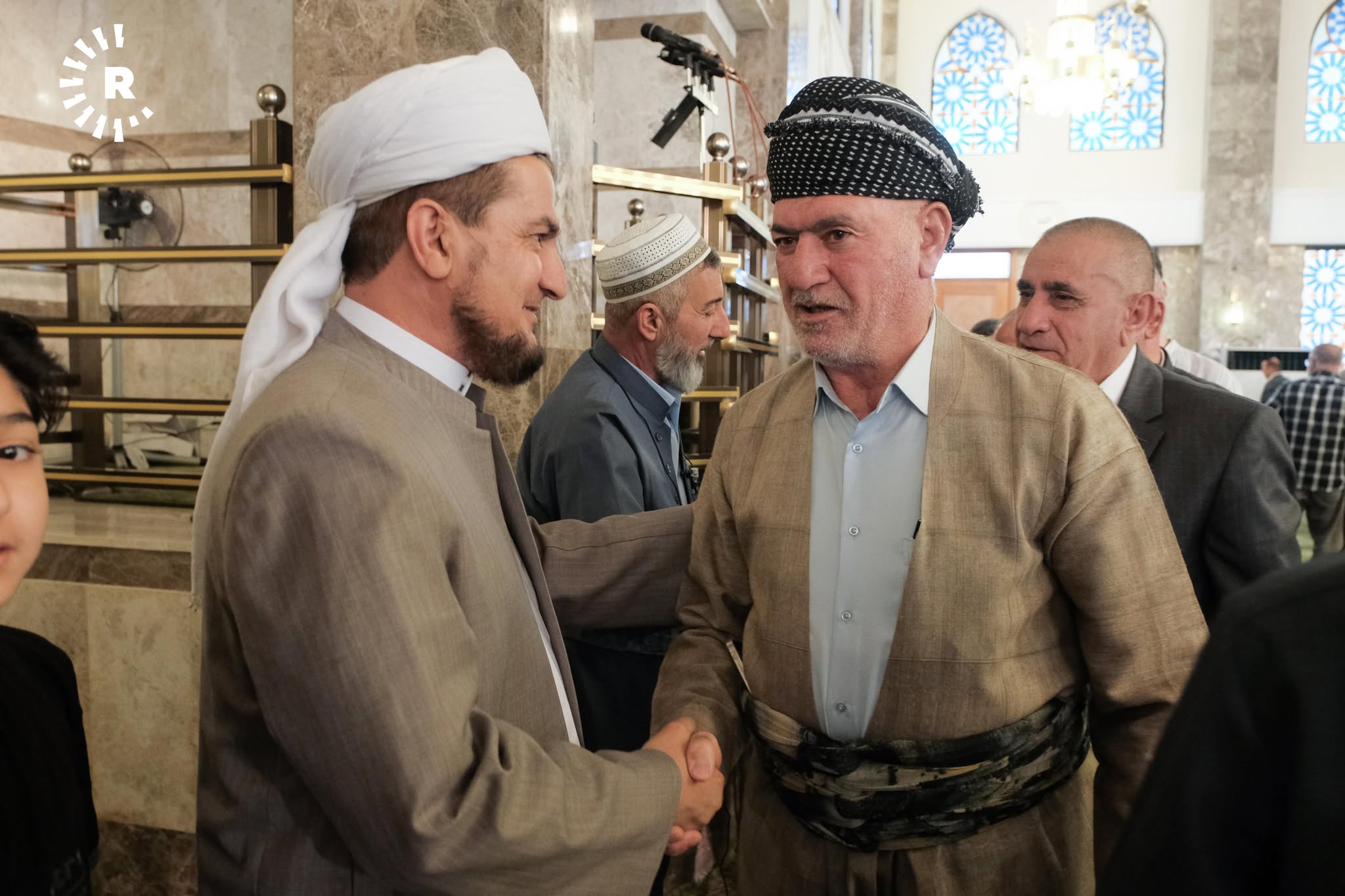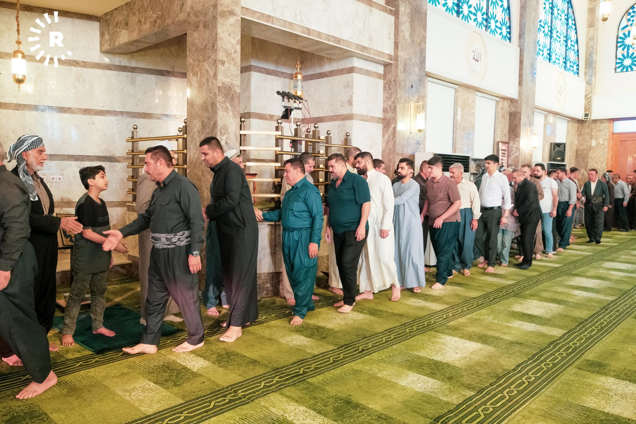 ئەوەی لەم وێنانە دەردەکەوێت، یەکێکە لە مزگەوتەکانی شاری هەولێرە و هاونیشتمانییان وەک نەریتێکی کوردەواری، ریز دەبەستن و یەک بە یەک تەوقە لەگەڵ یەکدی دەکەن و پیرۆزبایی جەژن لە یەکدی دەکەن.