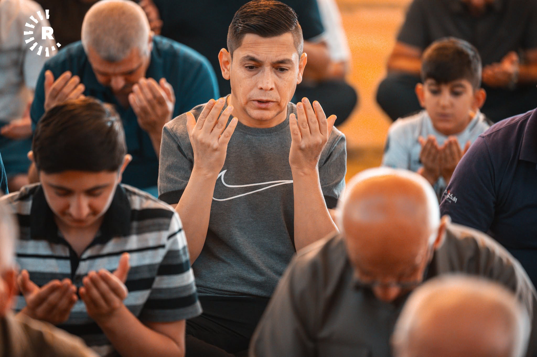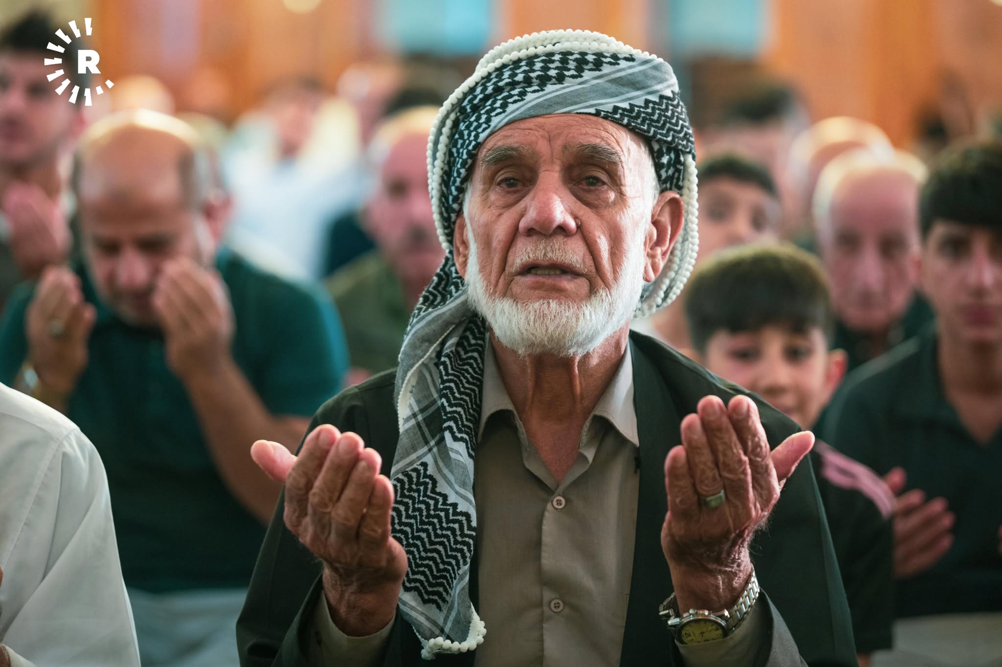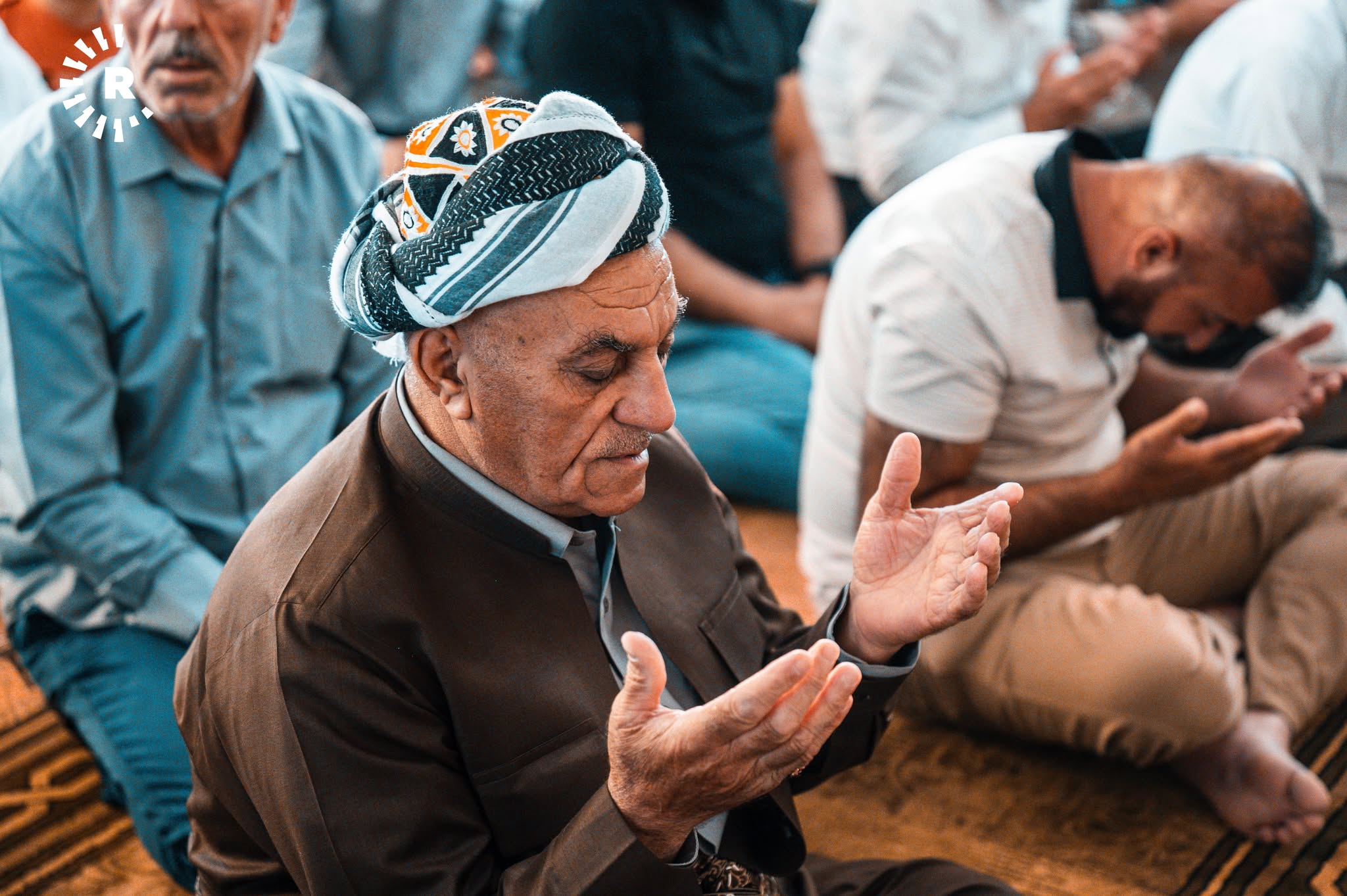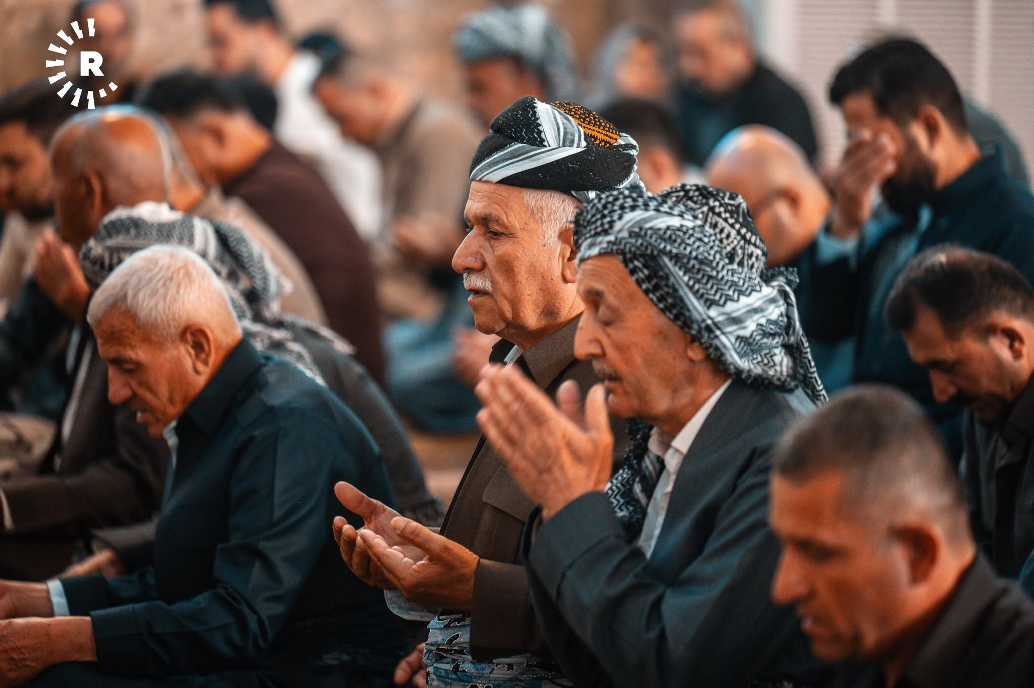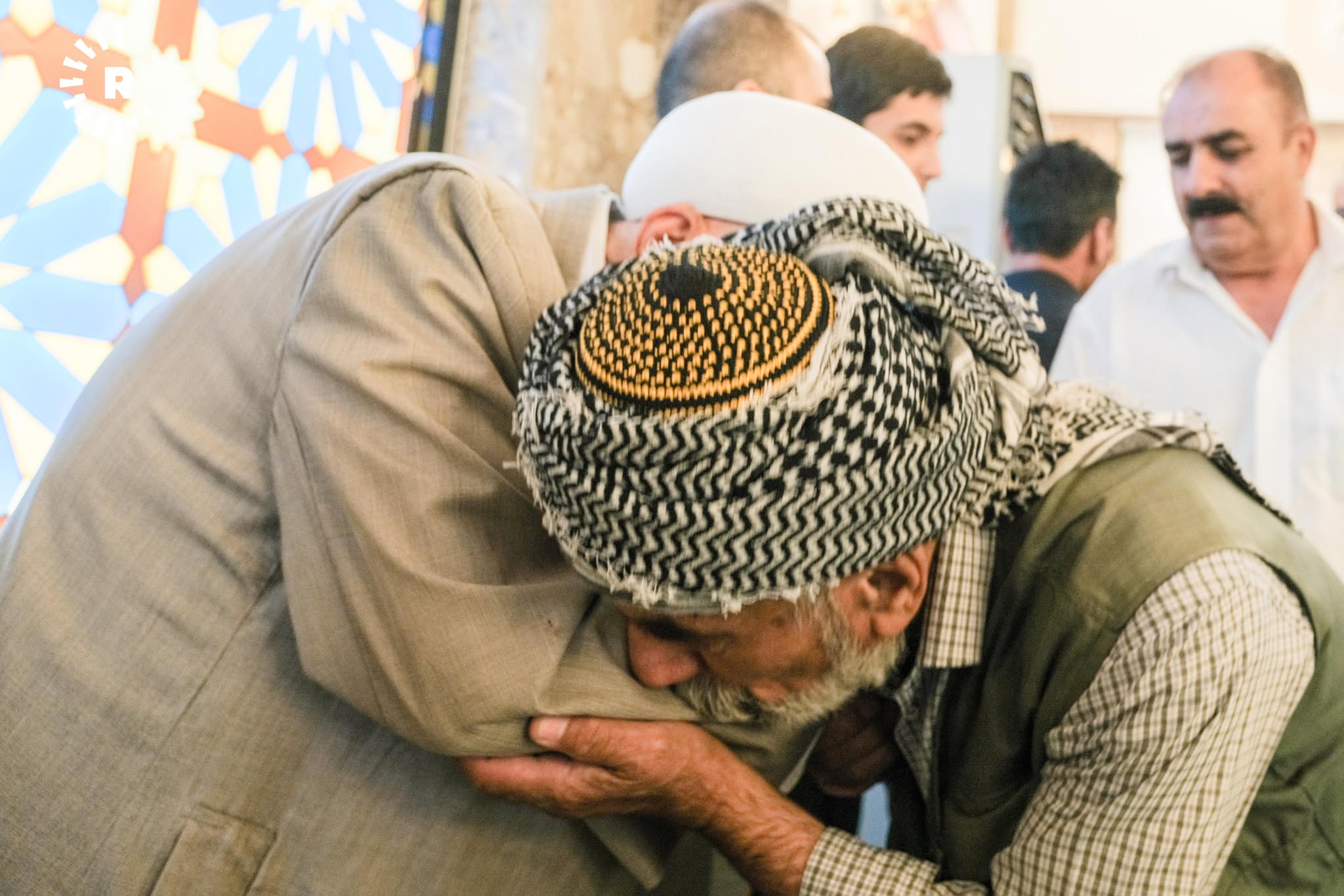 ئەوەی لەم وێنانە دەردەکەوێت، یەکێکە لە مزگەوتەکانی شاری هەولێرە و هاونیشتمانییان وەک نەریتێکی کوردەواری، ریز دەبەستن و یەک بە یەک تەوقە لەگەڵ یەکدی دەکەن و پیرۆزبایی جەژن لە یەکدی دەکەن.