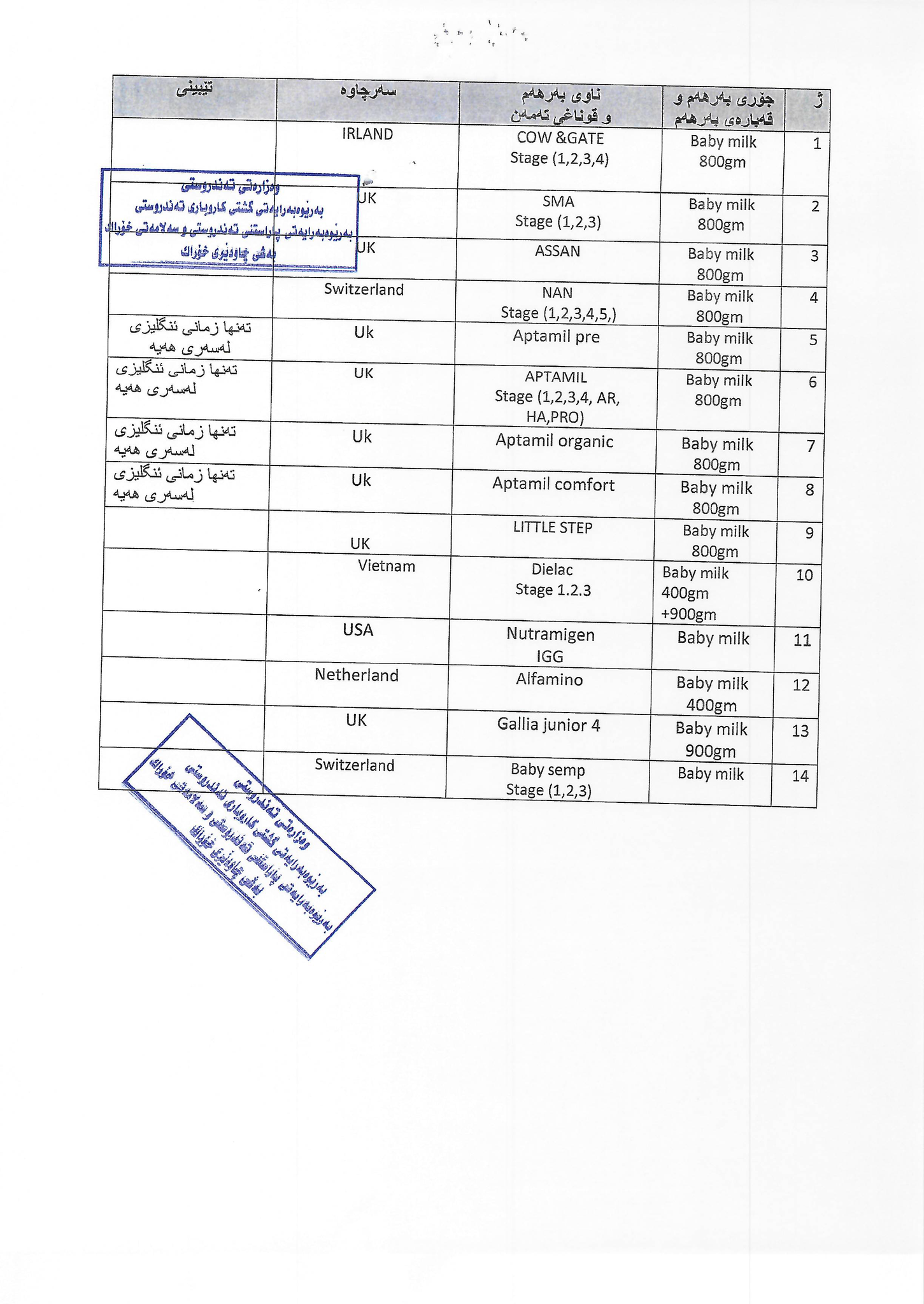 لە نووسراوەکەی وەزارەتی تەندروستیدا هاتووە: "هاوپێچ لەگەڵ نووسراوتان لیستی ناوی شیری منداڵان یەک تاوەکو 14 و لیستی ناوی خواردنەوەی وزەبەخش لە یەک تاوەکو 27 رەوانە دەکەین، بۆیە لەڕێگەی تیمەکانتان دەستبەجێ لە بازاڕ و کۆگەکان دەستیان بەسەردا بگیرێت و کۆبکرێنەوە، چونکە تۆمارنین و رێگەپیدانیان نییە، بەپێی رێنمایی وەزارەتمان ژمارە 2ـی ساڵی 2021."