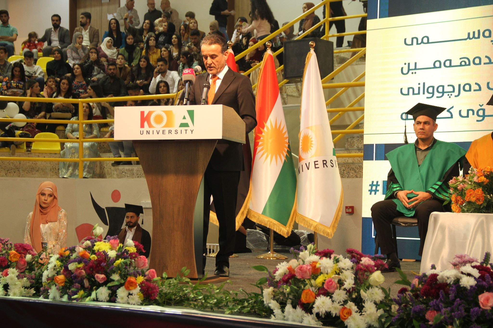 وەزیرى خوێندنى باڵا گوتی:" خۆشحاڵین کە دەبینین زانکۆی کۆیە رۆژ لە دوای رۆژ زیاتر پێشدەکەوێت، ئەم زانکۆیە لە رووی ژێرخان، توانای مرۆیی، ئاستی زانستی و بەرهەمی توێژینەوەی زانستی بەردەوام لە گەشەکردندایە و لە ریزبەندیی نیشتمانی و ریزبەندییە جیهانییەکانیشدا هەمیشە زانکۆی کۆیە پێشەنگی زانکۆکانی کوردستان بووە".