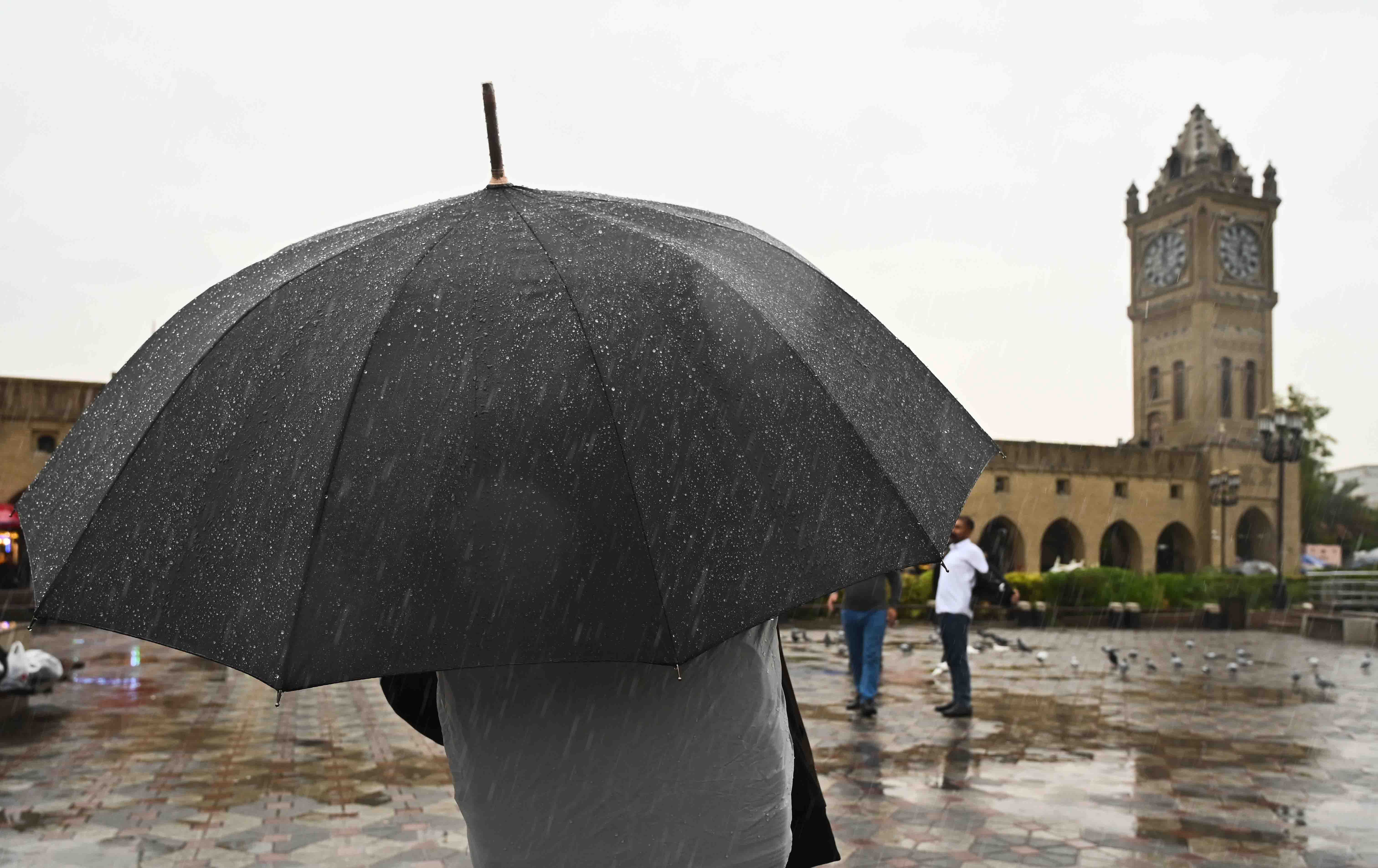 هاونیشتمانییەک لە هەولێر چەترێکی بەدەستەوە گرتووە لەکاتێکدا باران دەبارێت. وێنە: بڵند تاهیر - رووداو