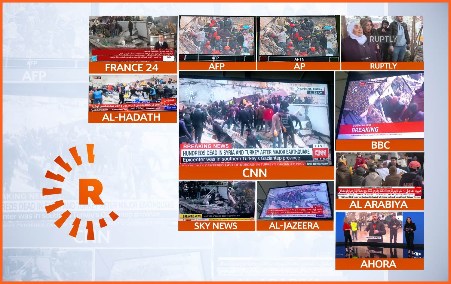 CNNـی ئەمریکی، BBCـی بەریتانی، جەزیرەی عەرەبی، ئەلعەرەبیەی عەرەبی، Sky Newsـی بەریتانی، حەدەسی عەرەبی و France 24ـی عەرەبی بەشێک بوون لەو کەناڵە جیهانییانەی رووداویان وەکو سەرچاوەی زانیاریی و دیمەنی بوومەلەرزەکە بەکارهێنا.
