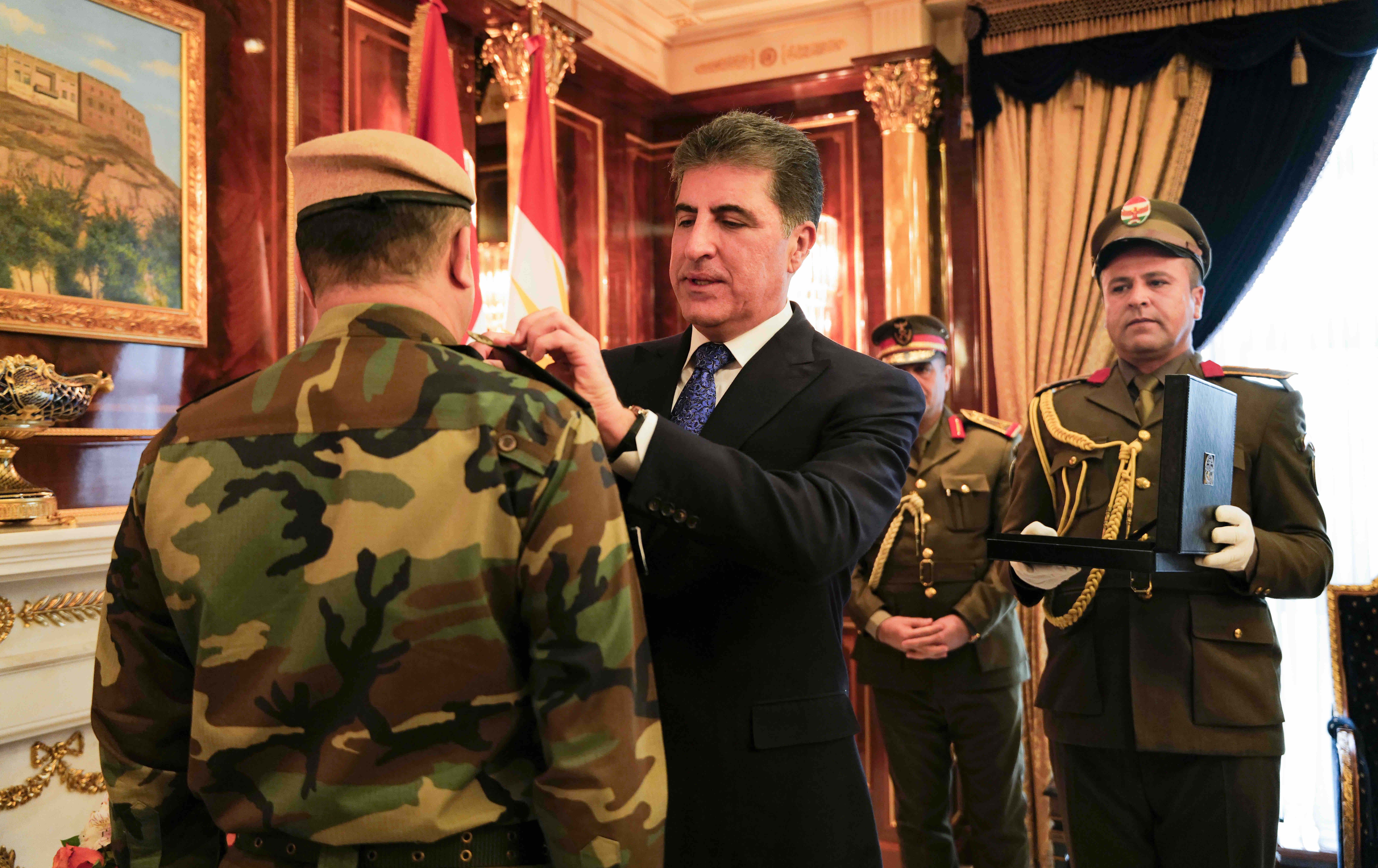 نێچيرڤان بارزانى، سهرۆكى ههرێمى كوردستان، له رێوڕهسمێكدا پلهى نوێى بۆ پێنج ئهفسهرى باڵاى وهزارهتى پێشمهرگه بهست. پلە بەستنەکە دوای ئەوە بوو کە سهرۆكى ههرێمى كوردستان فهرمانى بهرزكردنهوهى پلهكانيانى واژۆ كرد و بۆ ليوا روكن و ليوا بهرز كرانهوه.