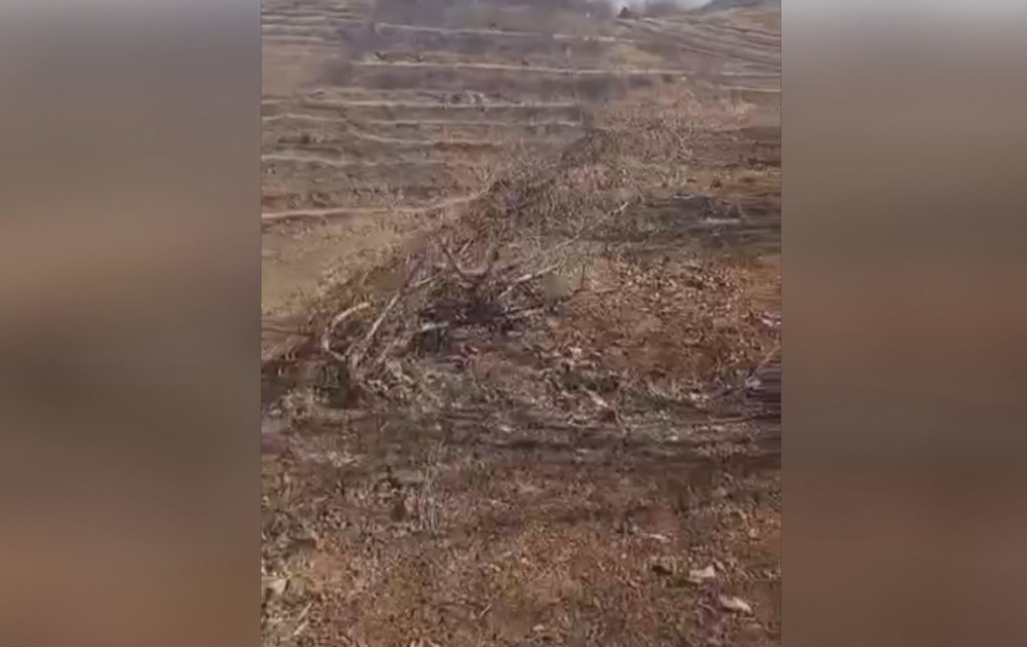 دارەکانی باخی مامۆستایەکی ئایینی لە سنە بڕدرانەوە و ئاگر لە خانووی نێو باخەکەی بەردرا.