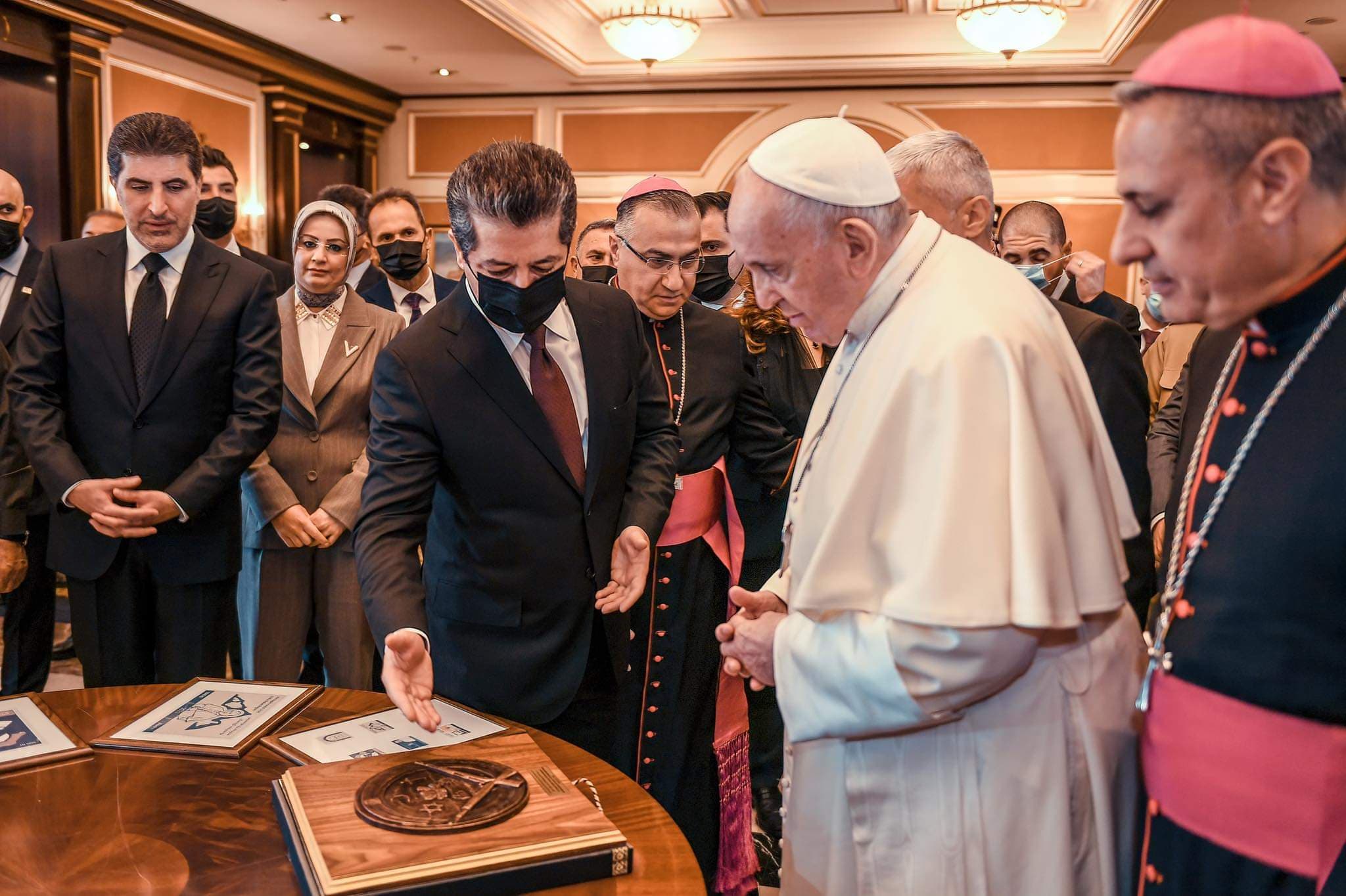 نێچیرڤان بارزانی، سەرۆکی هەرێمی کوردستان بە پاپا فرانسیسی راگەیاند، "بەناوی هەرێمی کوردستانەوە زۆر بە گەرمی بەخێرهاتنی قەداسەتی پاپا فرانسیس دەکەین.. سەردانیان رووداوێکی مێژوویی مەزنە و جێگەی ئەوپەڕی شانازی و خۆشحاڵییە. ئێمە بە هەموو پێکهاتەکانی کوردستانەوە شانازی بە سەردانەکەی دەکەین. بڕوای تەواومان بە ئازادی و فرەئایینی هەیە".