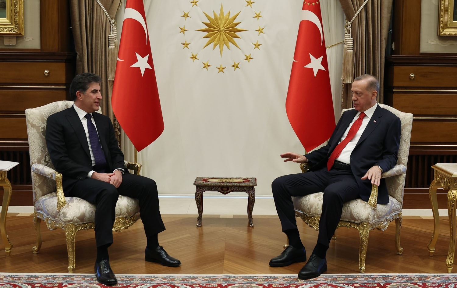 نێچیرڤان بارزانی، سەرۆکی هەرێمی کوردستان و رەجەب تەیب ئەردۆغان، سەرۆککۆماری تورکیا. وێنە: ئەرشیڤ