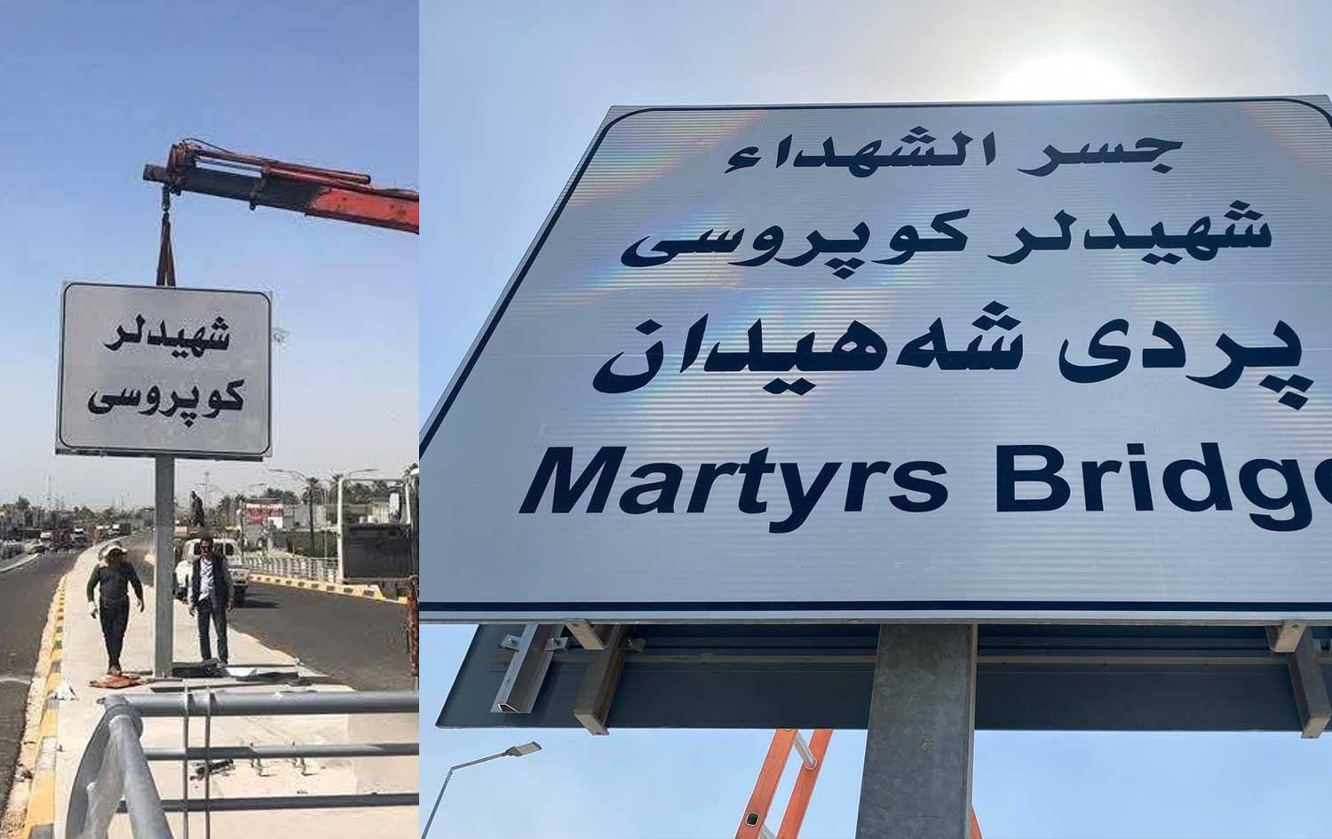 بەپێی گوتەی ئەندامەکەی ئەنجوومەنی پارێزگای سەڵاحەدین، لە مانگی شوباتی 2025، رەزامەندی پارێزگار وەرگیراوە کە ناوی پردەکە بەناوی "پردی شەهیدان" بێت و گوزارشت لە هەموو پێکهاتەکانی شارەکە بکات. شارەوانی تابلۆی پردەکەی بە چوار زمان نووسیبوو، دوو رۆژ پێش جەژن تابلۆکە دانرابوو، بەڵام رۆژی رابردوو ئەندامەکەی ئەنجوومەن خۆی تابلۆکەی بەبێ پرس و ئاگاداریی شارەوانی گۆڕیوە و تەنیا بە زمانی تورکمانی دایناوەتەوە.