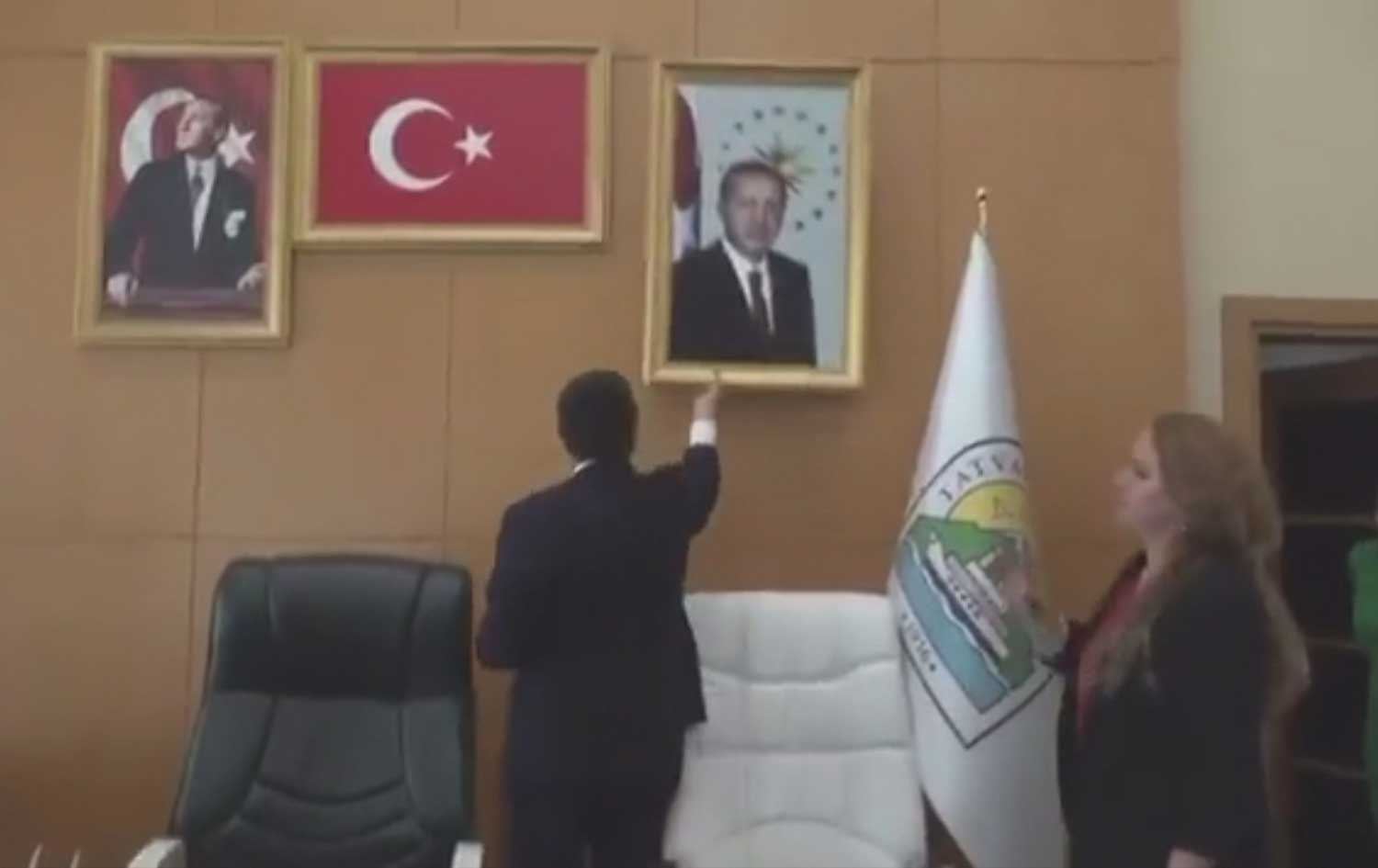 وێنەی ئەردۆغان لەلایەن سەرۆک شارەوانیی ناوچەی تەتوانی پارێزگای بەدلیسی باکووری کوردستان لێدەکرێتەوە