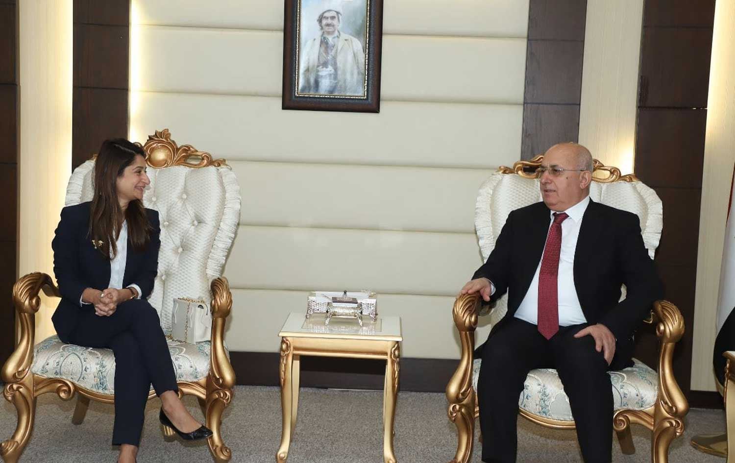 کۆبوونەوەی ئاوات شێخ جەناب، وەزیری دارایی هەرێمی کوردستان و زەهرا بێل، جێگری کۆنسوڵی ئەمریکا