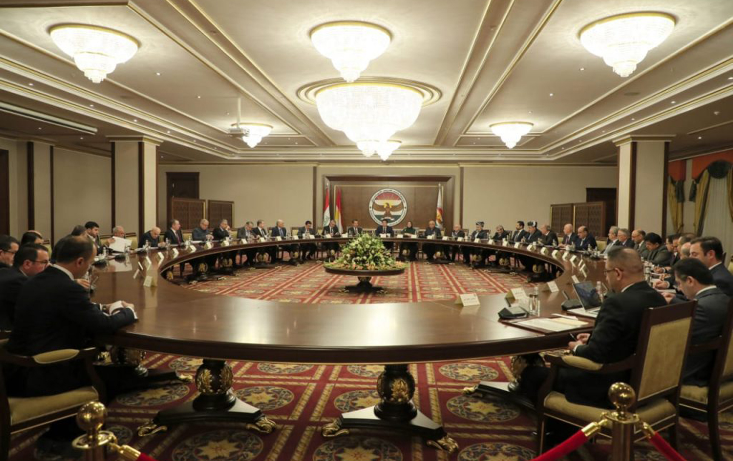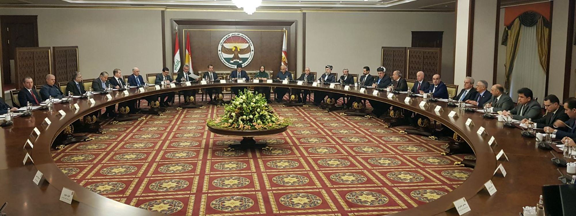 نێچیرڤان بارزانی، سەرۆکی هەرێمی کوردستان لەگەڵ سەرۆکایەتیی حکومەت، پەرلەمان و حیزبەکان لە کۆبوونەوەدایە.