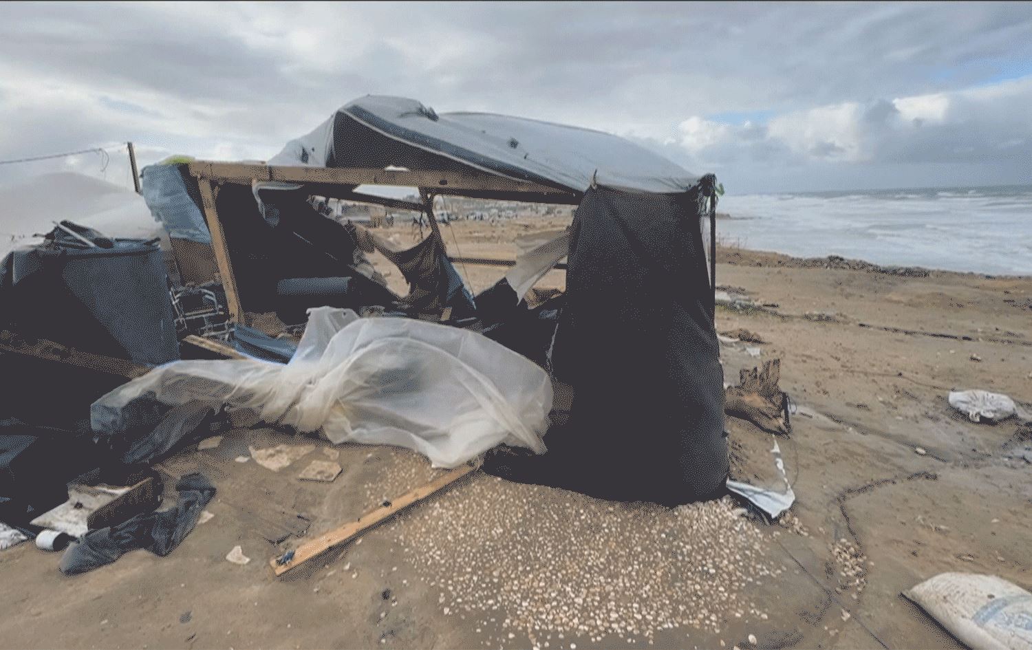 خێوەتەکانی شاری دێربەلەحی نێوەڕاستی غەززە، بەهۆی رەشەبای بەهێزی زستانەوە خۆیان ناگرن. وەک ئەوەی وێرانبوونی ماڵەکانیان و لەدەستدانی کەسوکاریان بەس نەبێت، ئێستا غەززەییەکان خێوەتێکیشیان نییە لە ژێریدا بحەسێنەوە.