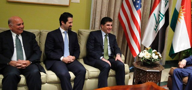 له سهرهتای سهردانهكهیدا لەگەڵ بەرێز جۆن كیری؛ وەزیری دەرەوەی ئەمەریكا و ژمارەیەك لە بەرپرسان و دیپلۆماتكارانی ئەمەریكا كۆبووەوە. لە كۆبوونەوەكەدا بارودۆخی ناوچەكە و قەیرانی دارایی كە ڕووبەڕووی عێراق بەگشتی و هەرێمی كوردستان بەتایبەتی بووەتەوە و ڕەوشی ئەمنیی ناوچەكە و شەڕی دژی تیرۆرستانی داعش و هەنگاوەكانی داهاتووی نێوان بەغدا و هەولێر و هاوپەیمانان بۆ ئازادكردنی شاری مووسڵ لە دەستی تیرۆر و پەیوەندییە دووقۆڵییەكانی نێوان ئەمەریكا و هەرێمی كوردستان، خرانە بەر باس و گفتوگۆ.
