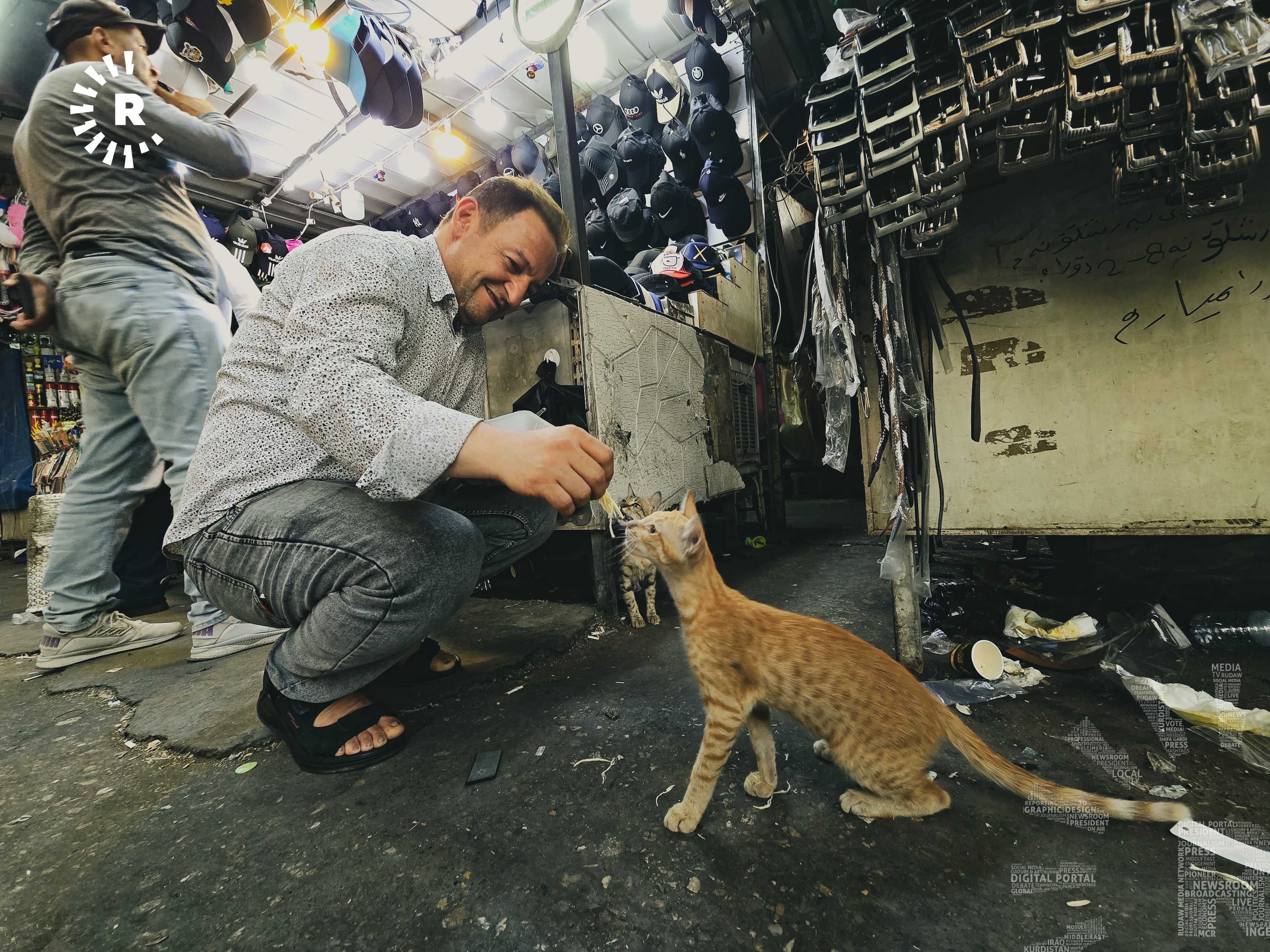 شاکر عەلی، دووکاندارێکی بازاڕی شێخەڵایە و چەند پشیلەیەک لە نزیک دووکانەکەی دەژین. شاکر بە رووداوی گوت: من زۆر یارمەتیی پشیلە دەدەم، ئەوان پاک و بێگەردن.