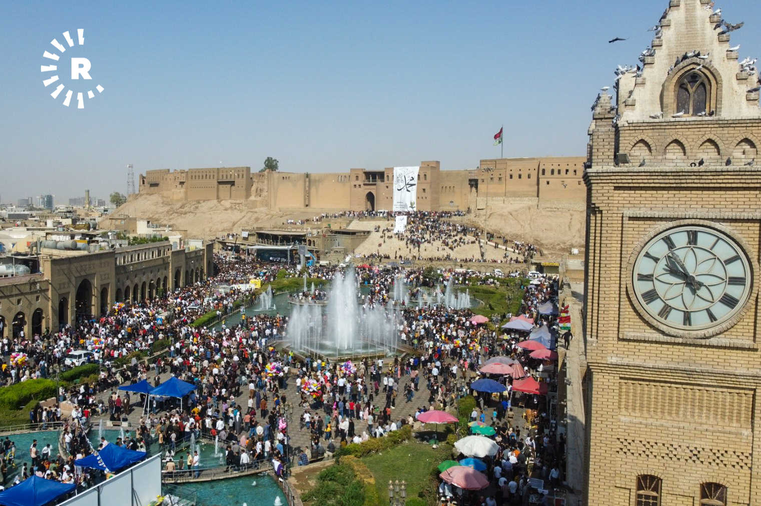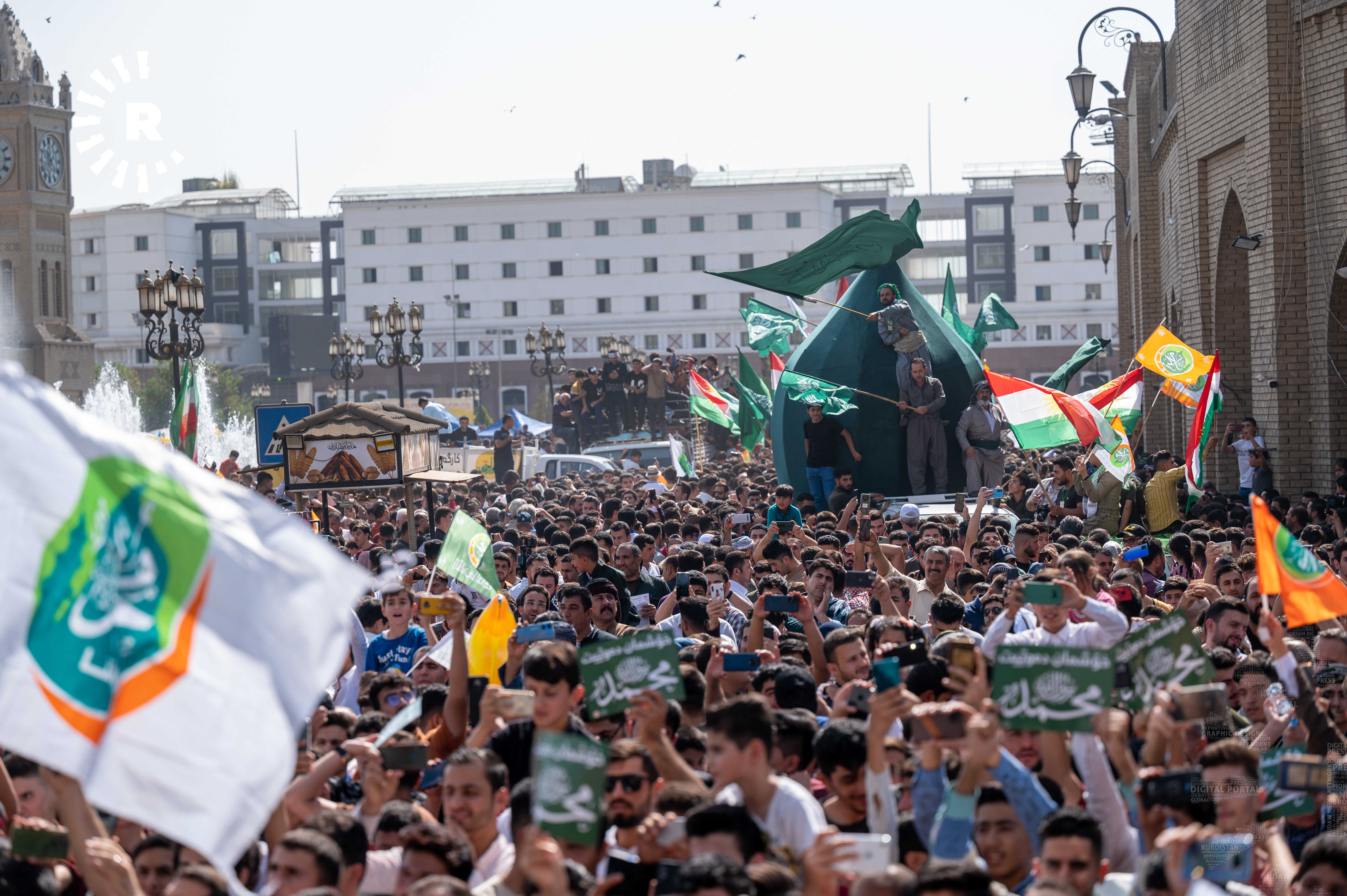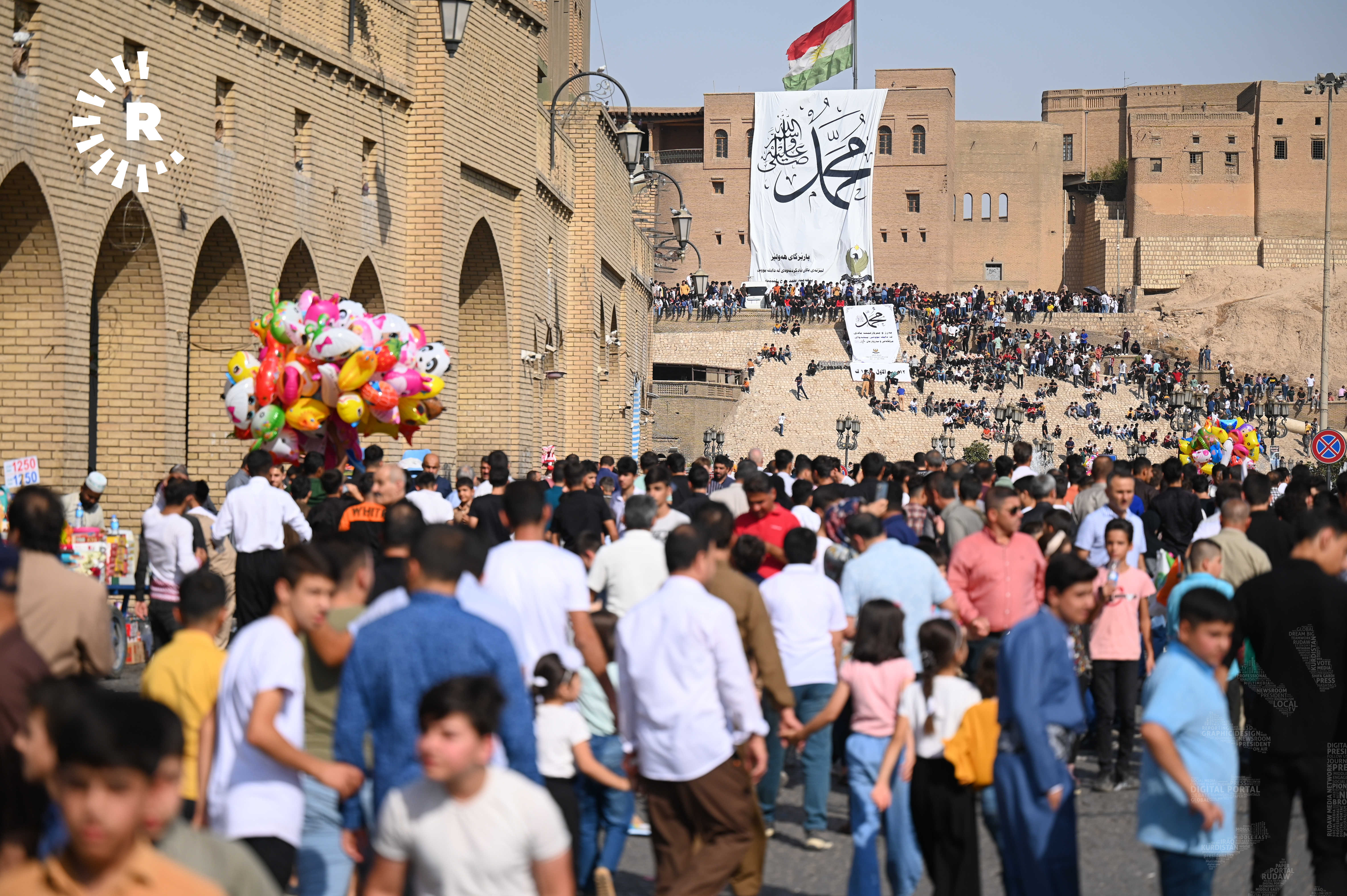 ئەمڕۆ بەبەشداریی هەزاران کەس لە بەردەم قەڵای هەولێر و نێو بازاڕ یادی مەولوودی پێغەمبەری ئیسلام، محەممەد (د.خ) کرایەوە.