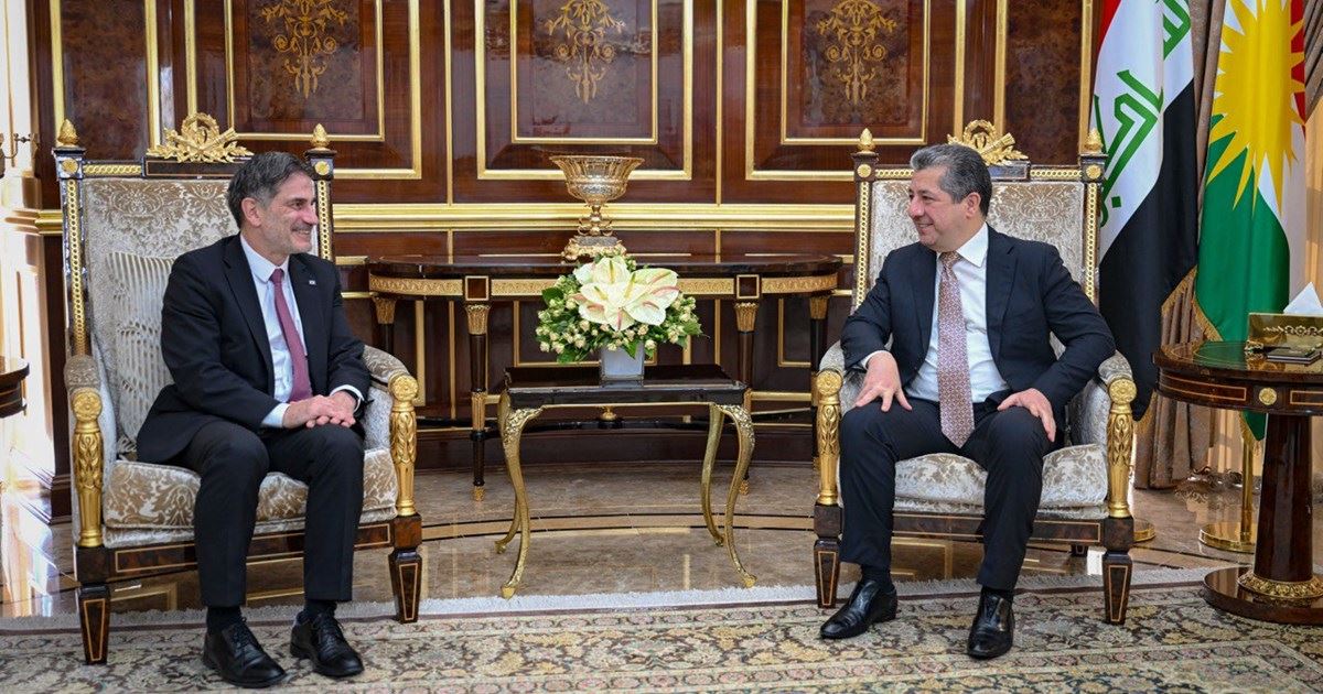 رۆژی چوارشەممە، 08-10-2025، مەسرور بارزانی، سەرۆکی حکومەتی هەرێمی کوردستان بەجیا پێشوازی لە کلێمێنس زێمتنەر، باڵیۆزی نوێی یەکێتیی ئەورووپا و دانيێل كرێبهر، باڵيۆزى نوێى ئهڵمانيا لە عێراق کرد.
