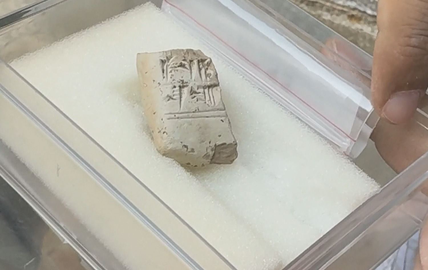 پارچە دۆزراوەکان دەبردرێنە پەیمانگەی فەرەنسی کە هەر لەنێو قەڵایە، ئەم پارچەیە نووسینی بزماری لەسەرە و گرنگترین پاشماوەیە کە دۆزراوەتەوە، مێژووەکەی بۆ 500 ساڵ پێش زایین و سەردەمی بابلی نوێ دەگەڕێتەوە.