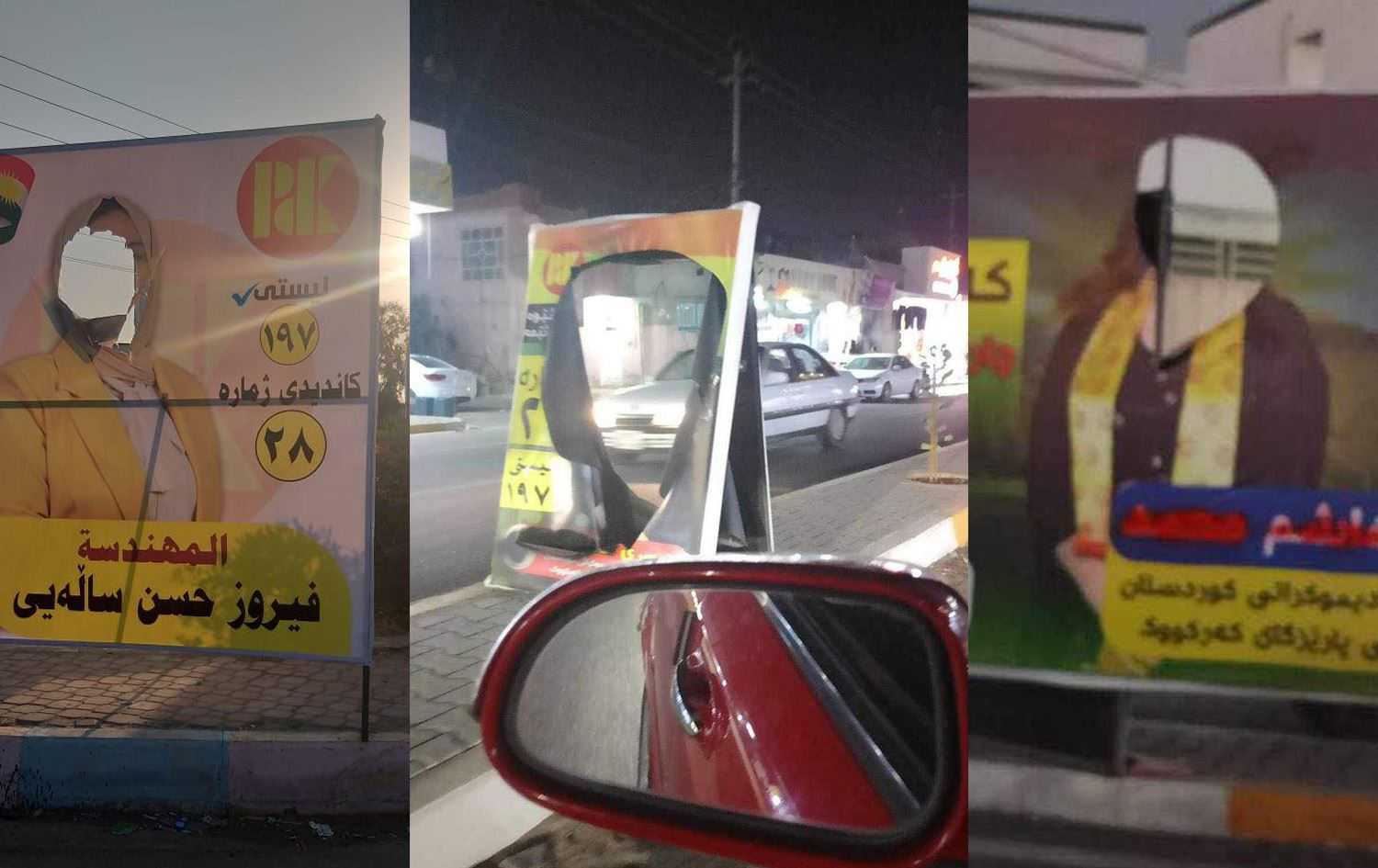 ئەو بەربژێرەی پارتی بۆ ئەنجوومەنی پارێزگای کەرکووک ئاماژەی بەوەکرد، پۆستەری بەشێکی زۆری بەربژێرانیان دڕێندراوە و هەندێکیشیان وەکو سووکایەتییەک سووتێندراوە.