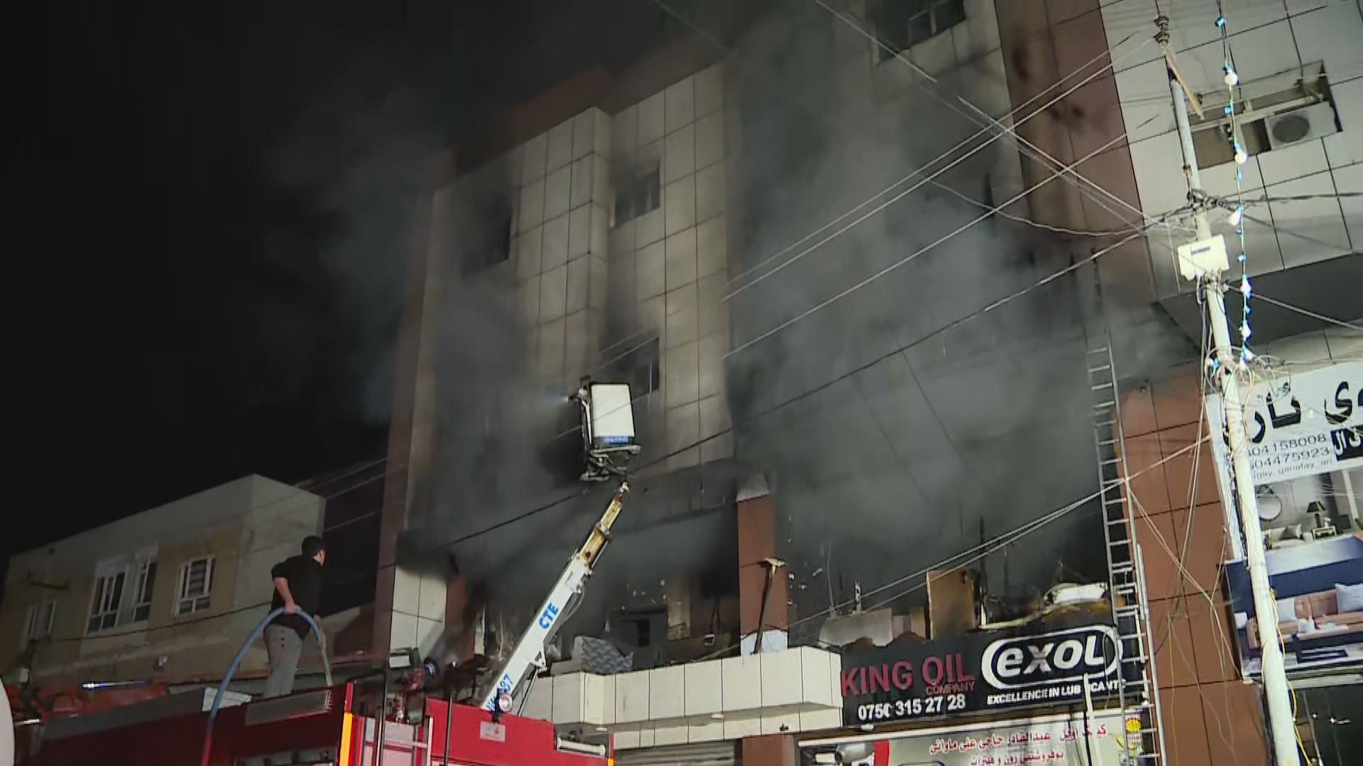 تیمەکانی بەرگریی شارستانی سۆران هەوڵی رزگارکردنی ئەو هاووڵاتییانە دەدەن کە لە نهۆمی سێیەمی باڵەخانەکەدا گیریان خواردووە، بەڵام بەهۆی فراوانی ئاگرەکە، رزگارکردنی ئەو هاووڵاتییانە قورسە.
