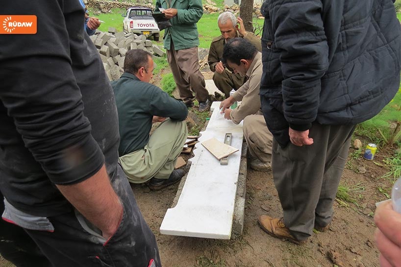 بەردی کێلەکان لەلایەن حەجاری قازی، دیزاینەکەیشی لەلایەن مەسعودی قازیی و تاشینی بەردەکانیش لەلایەن فاروقی قازی لە مهاباد دروستکراون.