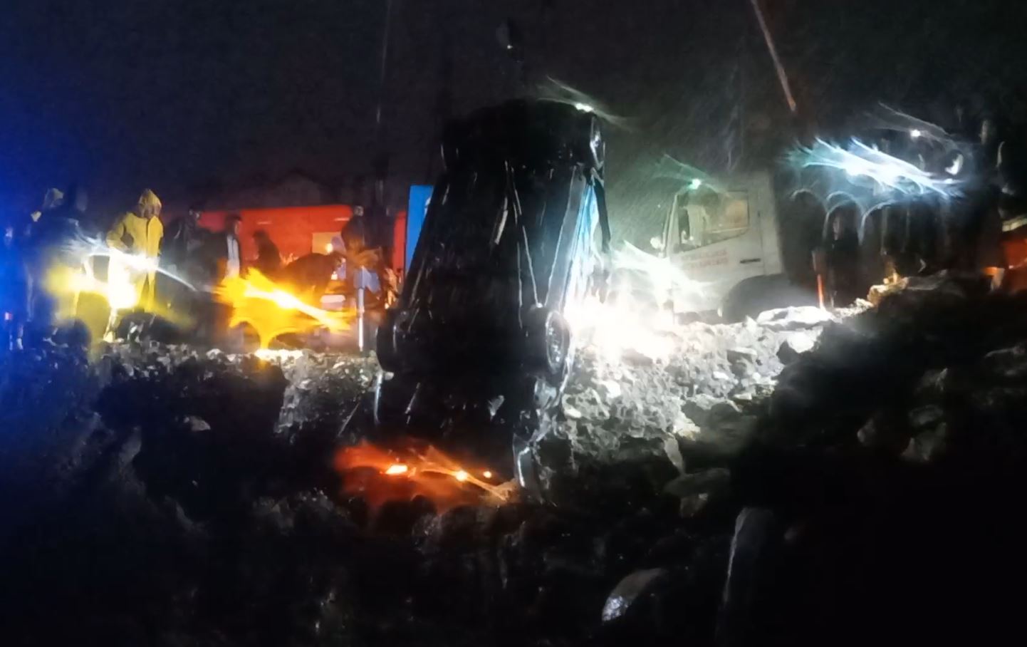 تیمەکانی بەرگریی شارستانی و پۆلیس و ئاسایش ژنێکیان لەنێو ئۆتۆمبێلەکە رزگارکردووە، بەڵام شۆفێرەکە کە هاوژینیەتی بێسەروشوێن بووبووو و دواتر تەرمەکەی دۆزرایەوە.