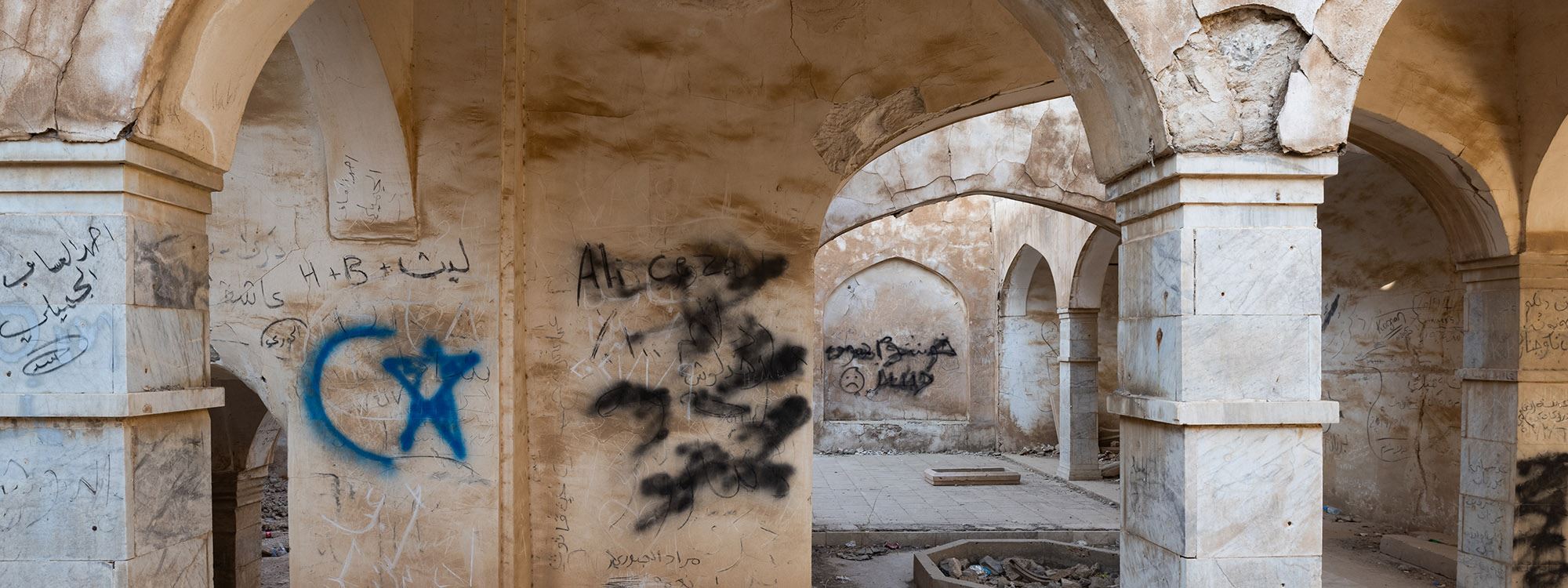 قەڵای کەرکووک کە یەکێکە لە شوێنەوارە دێرینەکانی عێراق و کوردستان، بەڵام دیوارەکانی پیسکراون بە لۆگۆ و درووشمی جیاواز و سیمای شێوێندراوە.