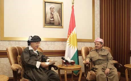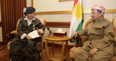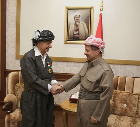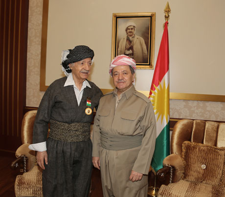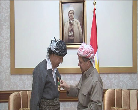 رۆژی چوارشەممە 10ـی 6ـی 2015 لە پیرمام مەسعود بارزانی "میدالیای بارزانی نەمر"ی بەخشییە عەزیز محەممەد سیاسەتمەدار و سكرتێری پێشووتری حیزبی شیوعی کوردستان- عێراق.