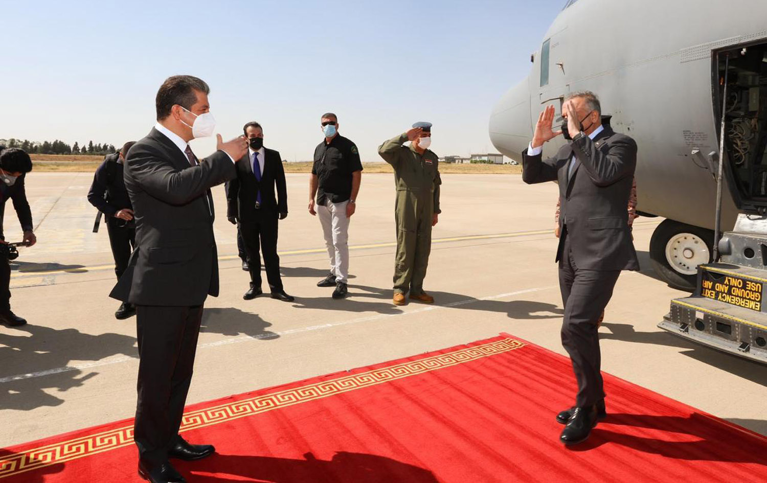 پێشوازیی مەسرور بارزانی، سەرۆکوەزیرانی هەرێمی کوردستان لە مستەفا کازمی، سەرۆکوەزیرانی عێراق