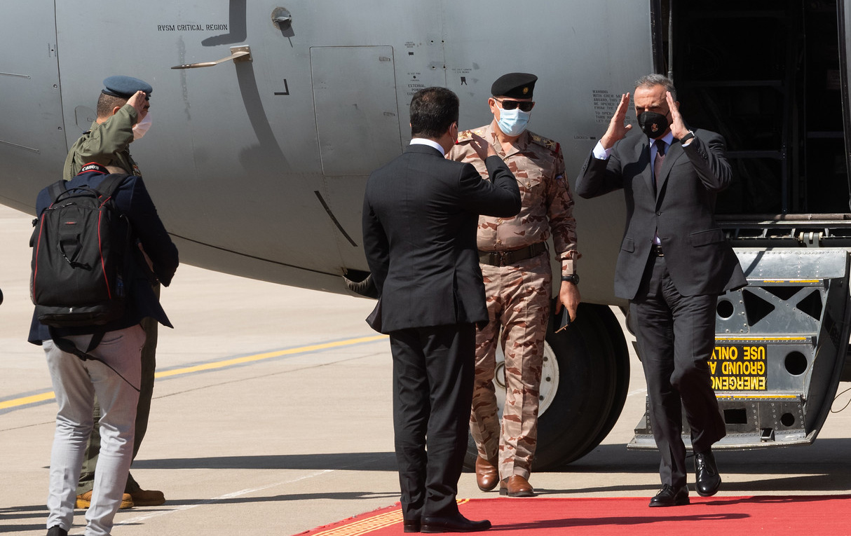 رۆژی پێنجشەممە 10ی ئەیلوولی 2020 مستەفا کازمی، بە یاوەریی شاندێک کە پێکهاتبوون لە وەزیرانی دەرەوە، بەرگری، نەوت، کۆچ و کۆچبەران و چەند بەرپرسێکی دیکە، گەیشتنە هەولێر و لەلایەن مەسرور بارزانی، سەرۆکوەزیرانی هەرێمی کوردستانەوە پێشوازییان لێکرا.
