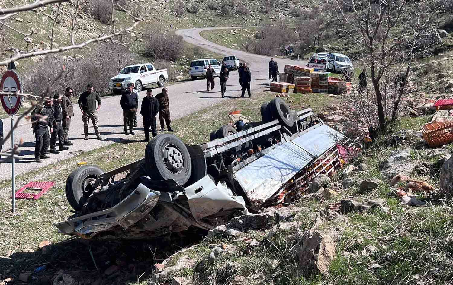 بە وێنە؛ هاتووچۆی سلێمانی ئەم وێنانەی رووداوە هاتووچۆکەی چەمی رێزانی بڵاوکردووەتەوە، لە رووداوەکەدا بارهەڵگرێک کە مریشکی پێبووە، وەرگەڕاوە و بەهۆیەوە سێ کەس گیانیان لەدەستدا pic.twitter.com/9ldoXAYph8